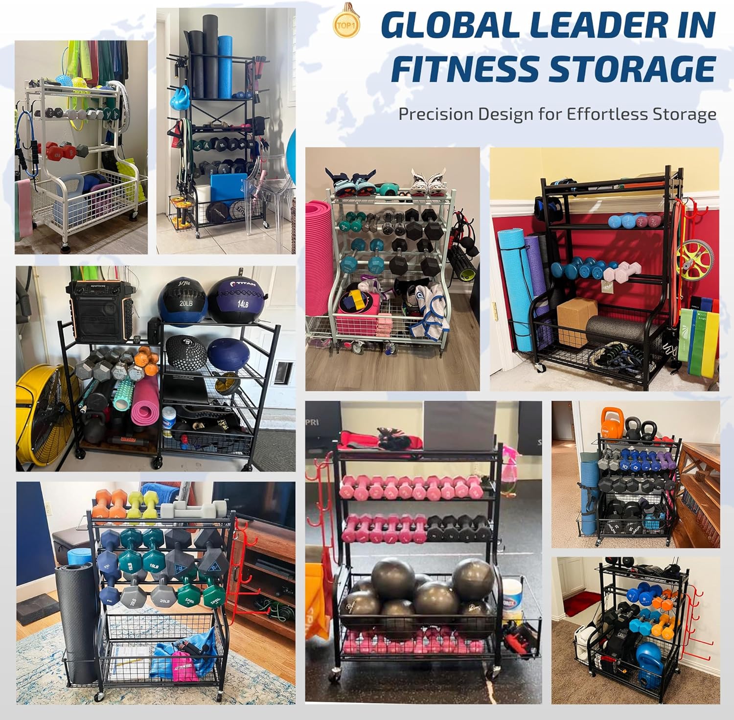 【Extra Large Capacity】: Our workout storage rack equipped with 3 layers of dumbbell storage racks, a side basket for yoga mat and foam roller, several side storage hangers for storing resistance band and roller wheels. Bottom storage rack is perfect for storing balls, yoga blocks and other exercise equipment.