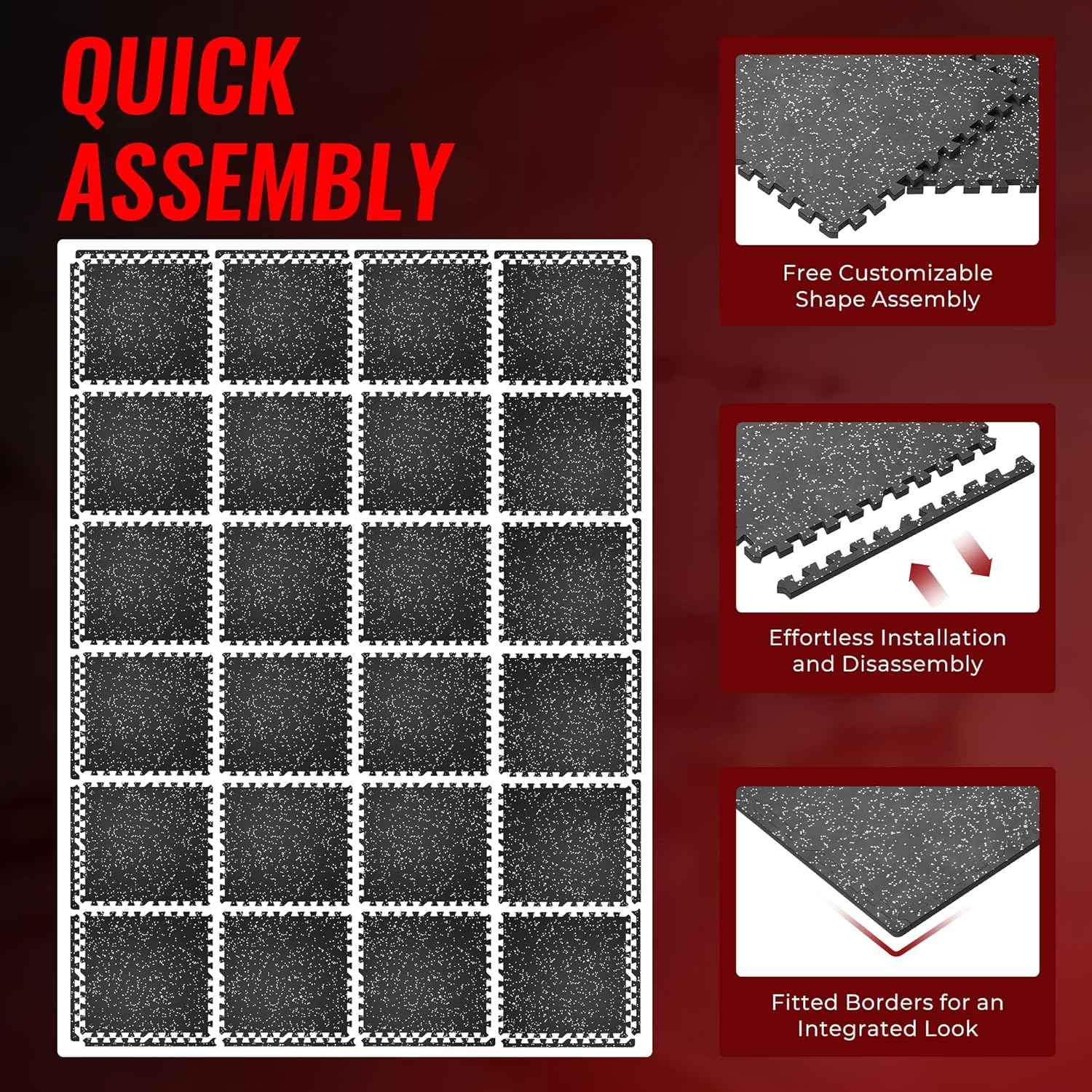 SUPERJARE 0.56” Thick 24 Pcs 96 Sq Ft Rubber Top Exercise Equipment Mats, High Density EVA Foam Mats with Rubber Top, Interlocking Gym Flooring for Home Gym, Protective Workout Mat, Black/Grey