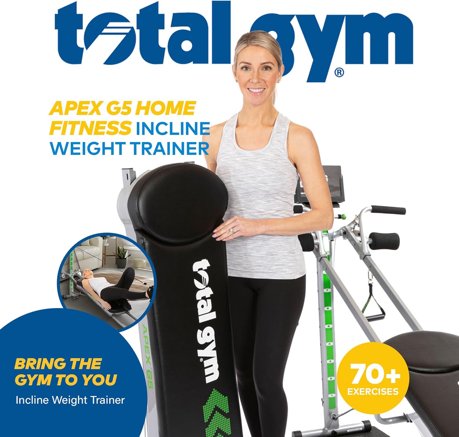 VARIOUS WORKOUT OPTIONS: Start your at-home workout with 8 resistance levels and over 70 exercises using Total Gym; Enjoy low-impact, fluid movements, effortlessly transitioning between exercises