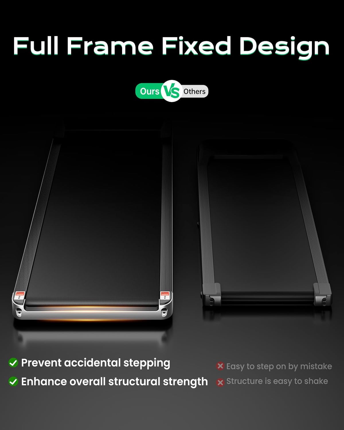 【Shock Absorption Design】: The Treaflow Walking Pad features six shock absorbers on the base, ensuring a smooth and comfortable running experience while significantly reducing joint impact.