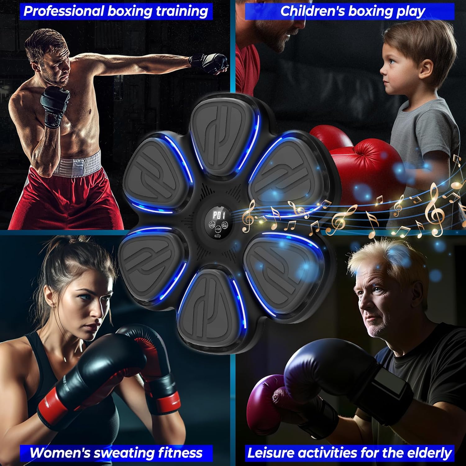 INTELLIGENT MUSIC BOXING MACHINE FOR ADULTS- This boxing music workout machine offers adults and Kids a brand new way to keep fit, featuring 9 different speeds and 9 modes to meet different needs of various users. Whether you’re a beginner or a pro, you can find the difficulty level that suits you. Enjoy hitting in rhythm with the accompanying light effects, enhancing both fun and fitness.