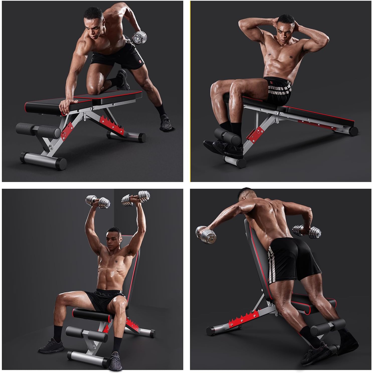 【Comfort Ensured】 back pad and seat pad are made from high-density foam, composite board and PU leather cover. Small gap and slopes to ensure maximum comfort for the hips and back. High rebound padding provides strong support for the back while allowing the cushion to maintain its shape after long-term bench exercise
