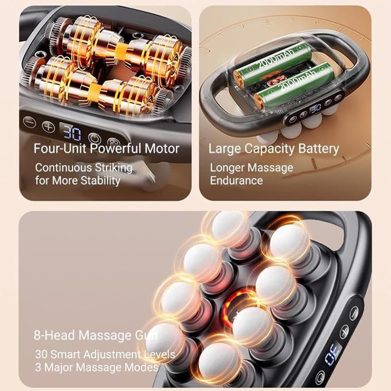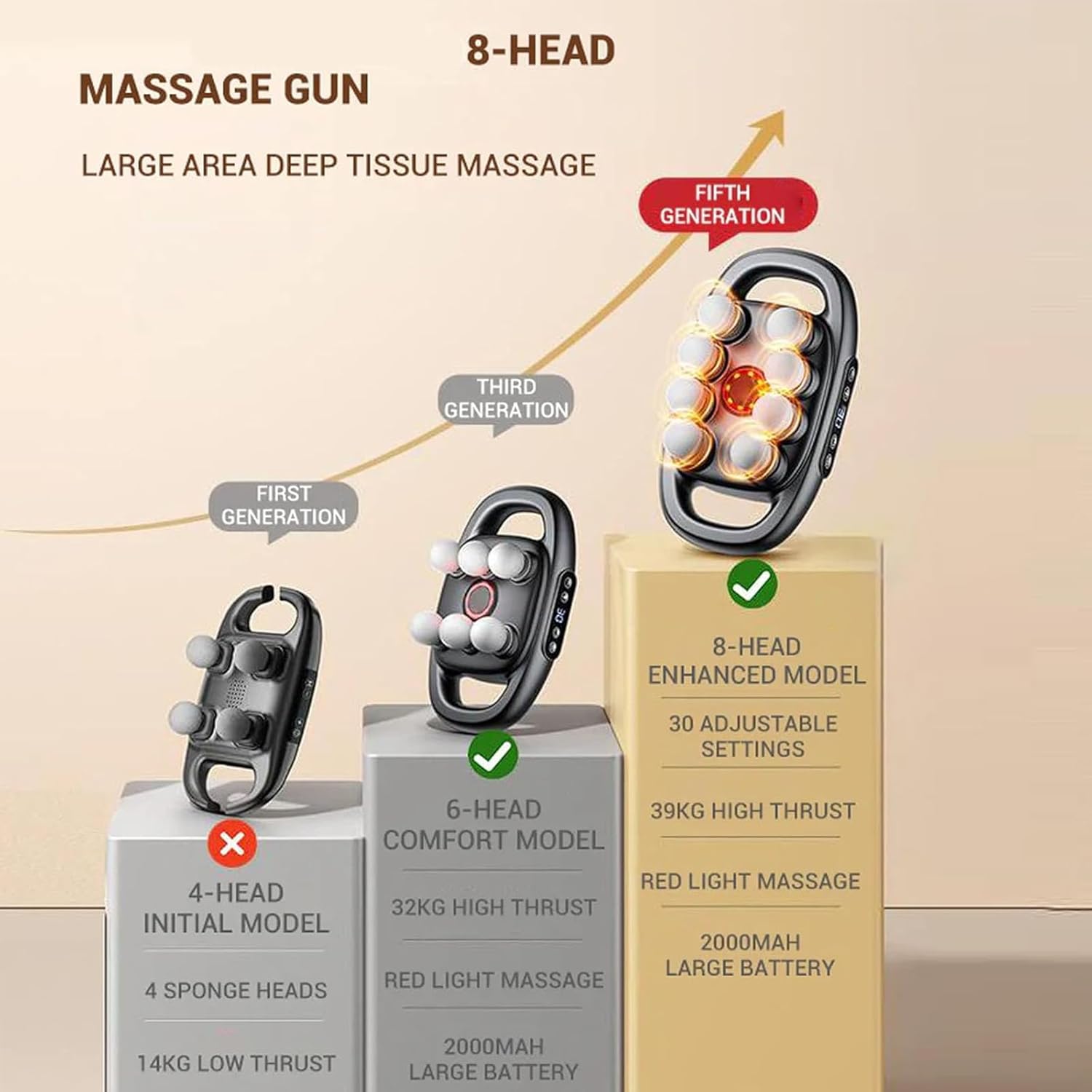 16-Drive 8-Head Massage Gun Set, 9 Levels Deep Tissue Percussion for Full Body Pain Relief – Adjustable Modes for Back/Shoulders/Legs (Ideal Gift for Women & Men)