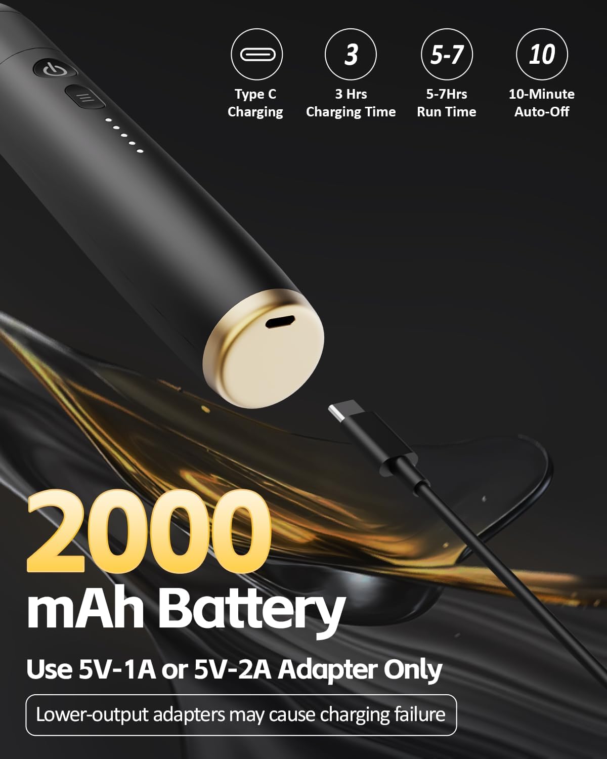 Brushless Motor & Long Battery Life: Powered by a powerful brushless motor and a 2000mAh battery, enjoy 5–7 hours of use on a single 2.5-hour charge. Includes a 10-minute auto shut-off for safety and operates quietly (<55dB) so you can relax fully