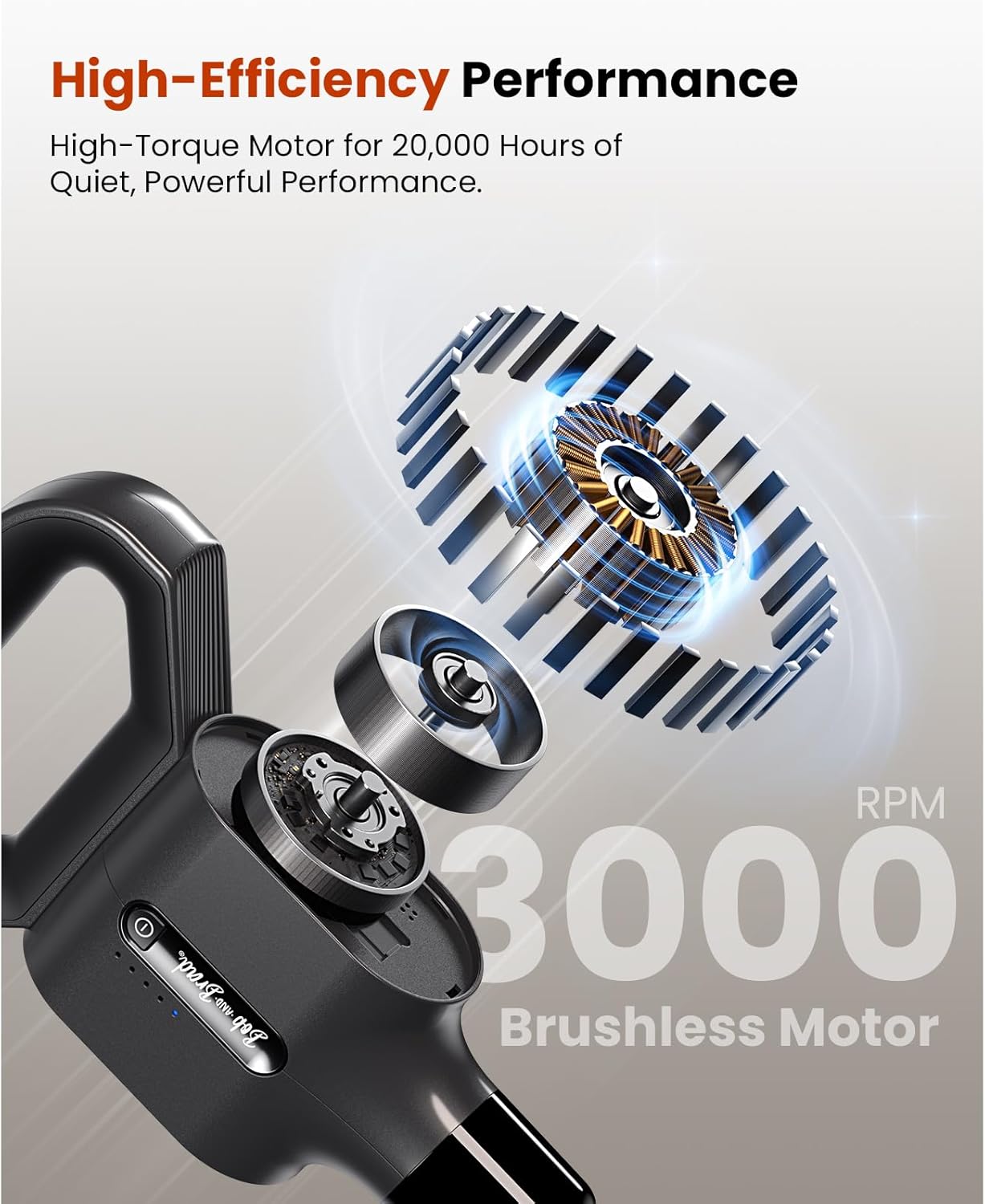Powerful & Durable Brushless Motor: Delivers up to 3000rpm speed, 12mm amplitude, and 30W power to instantly activate deep muscle resonance. Strong, consistent power output easily breaks down muscle stiffness and fatigue adhesions. The brushless design eliminates carbon brush wear, ensuring long-lasting stable performance for pro-grade relaxation. 5 adjustable speed settings suit everything from gentle daily relief to deep muscle decompression.