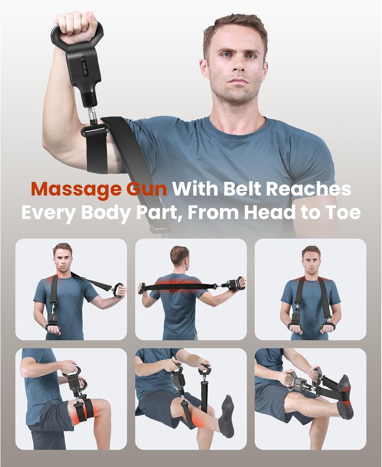 BOB AND BRAD 2-in-1 Massage Gun with Belt for Pain Relief, FSA Eligible/HSA Eligible, Dual-Purpose Percussion Back Massage Gun Deep Tissue Massager for Sore Muscle Relaxation, Therapists, Men, Women
