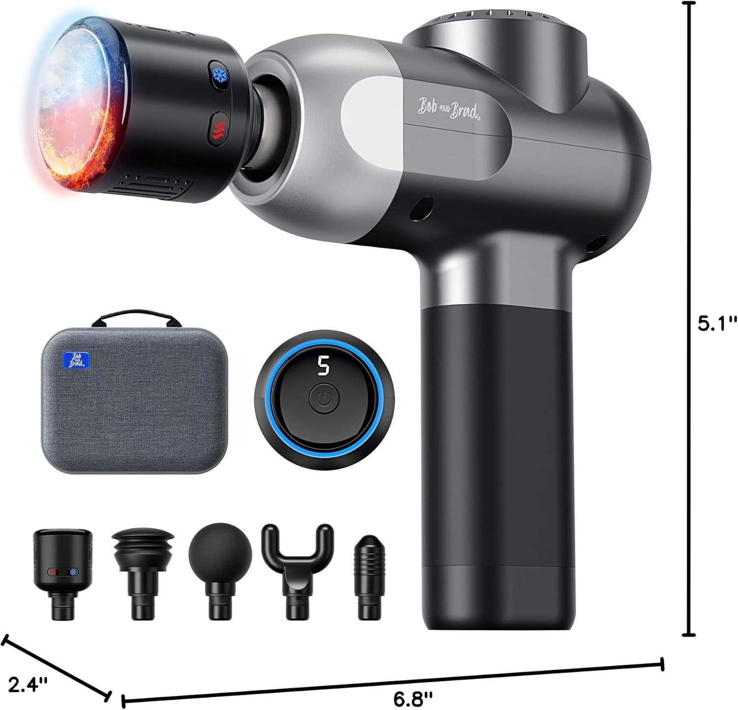 BOB AND BRAD C2 Pro Massage Gun with Heat and Cold Therapy, Mini Massager Gun Deep Tissue, Heated Professional Electric Back Massager for Athletes, Handheld Massager