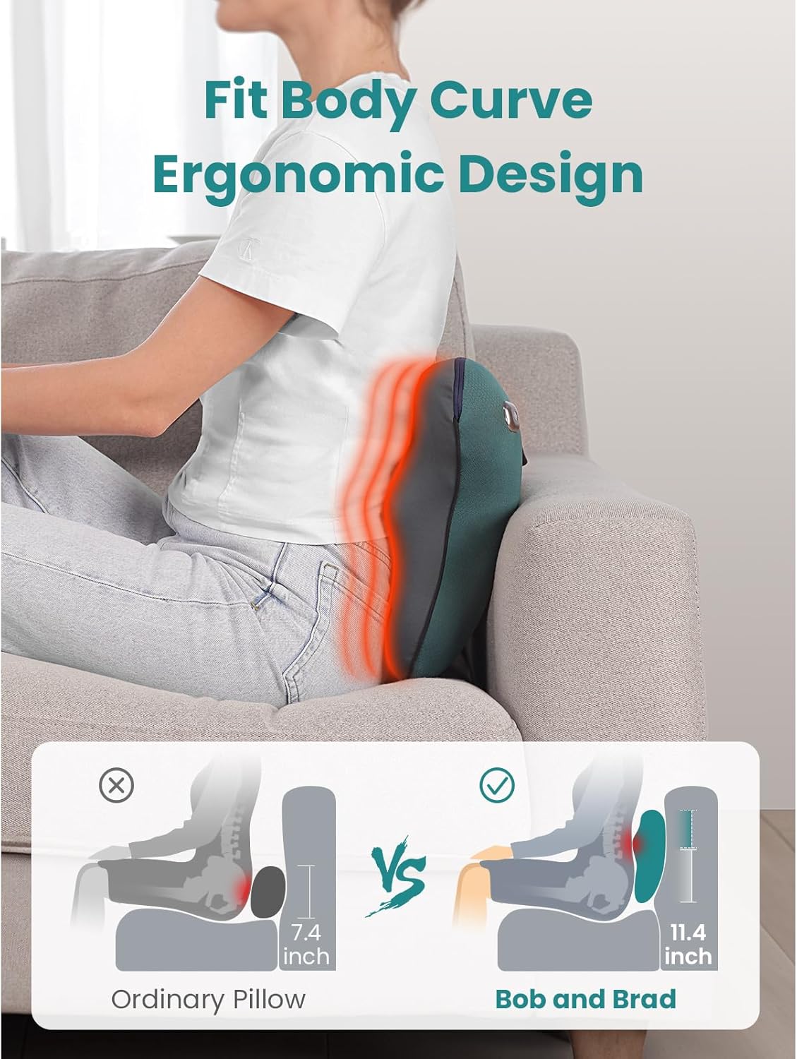 Upgraded Design for Full Body Relaxation – The BOB AND BRAD EZBack shiatsu back and neck massager with heat adopts a curved shape ergonomic design, 4 inches longer than an ordinary massage pillows. This ensures better support and coverage for your neck and back. Effortlessly target your neck, back, shoulders, legs, calves, or feet whether you are at home or in the office. Note: It requires a plug-in power source and is not rechargeable