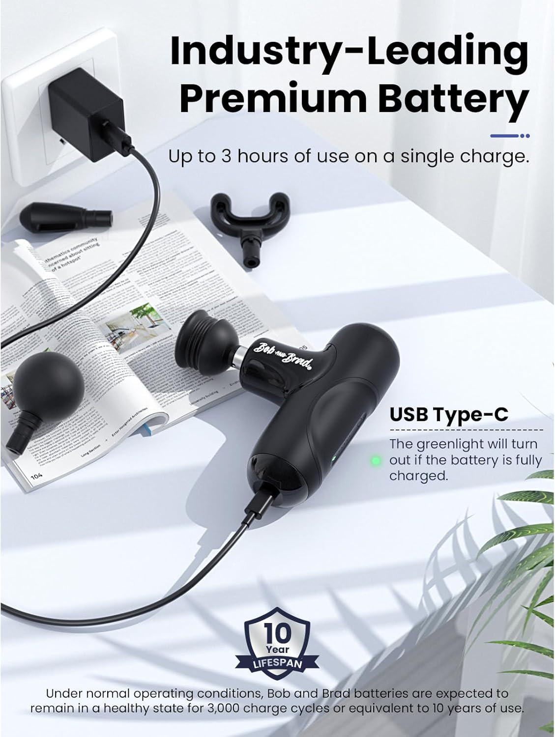USB-C CHARGING – This deep tissue percussion muscle massage gun can be charged by USB-C with the regular phone adapter or 5V/2A adapter (not included). Use it in the home, gym, or office