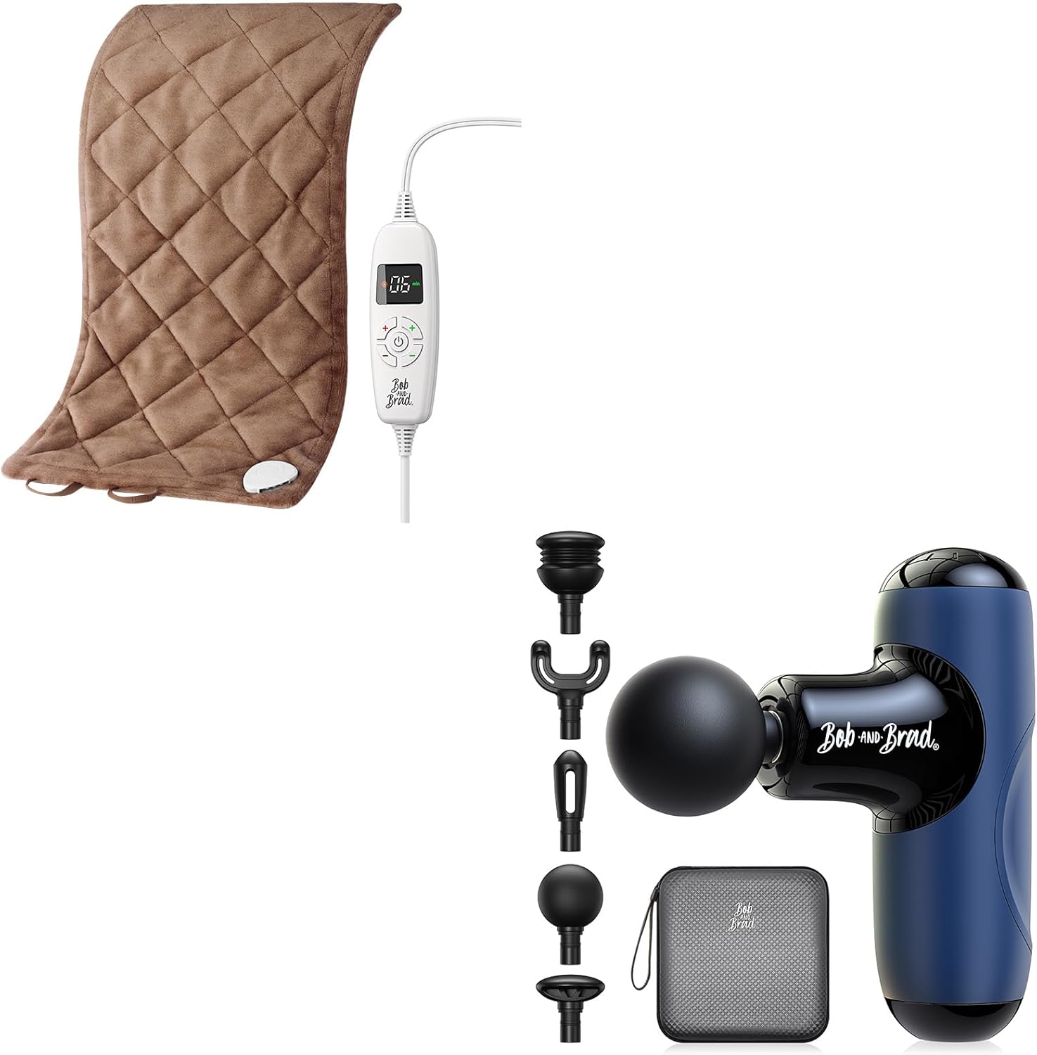 BOB AND BRAD Q2 Mini Massage Gun (Blue) and Weighted Heating Pad with Far Infrared Therapy for Neck and Shoulders