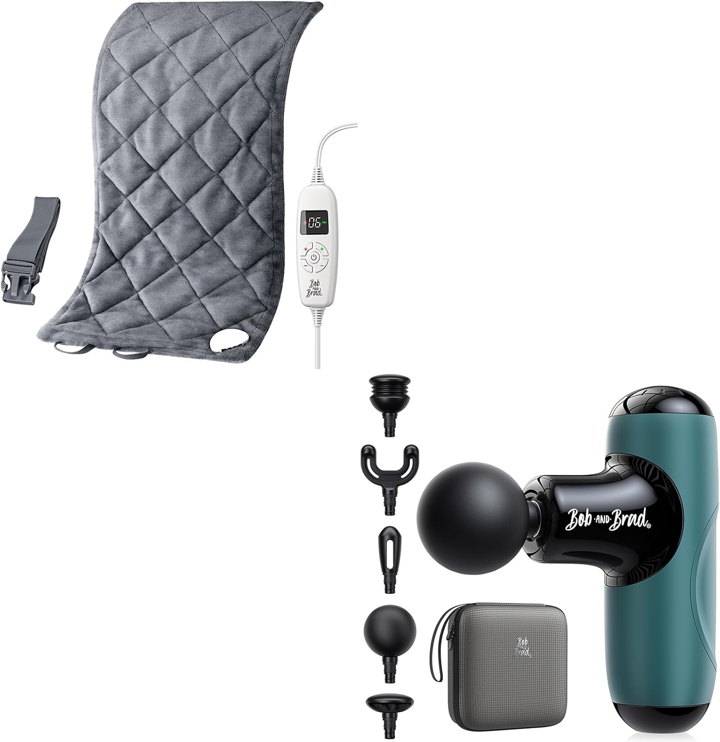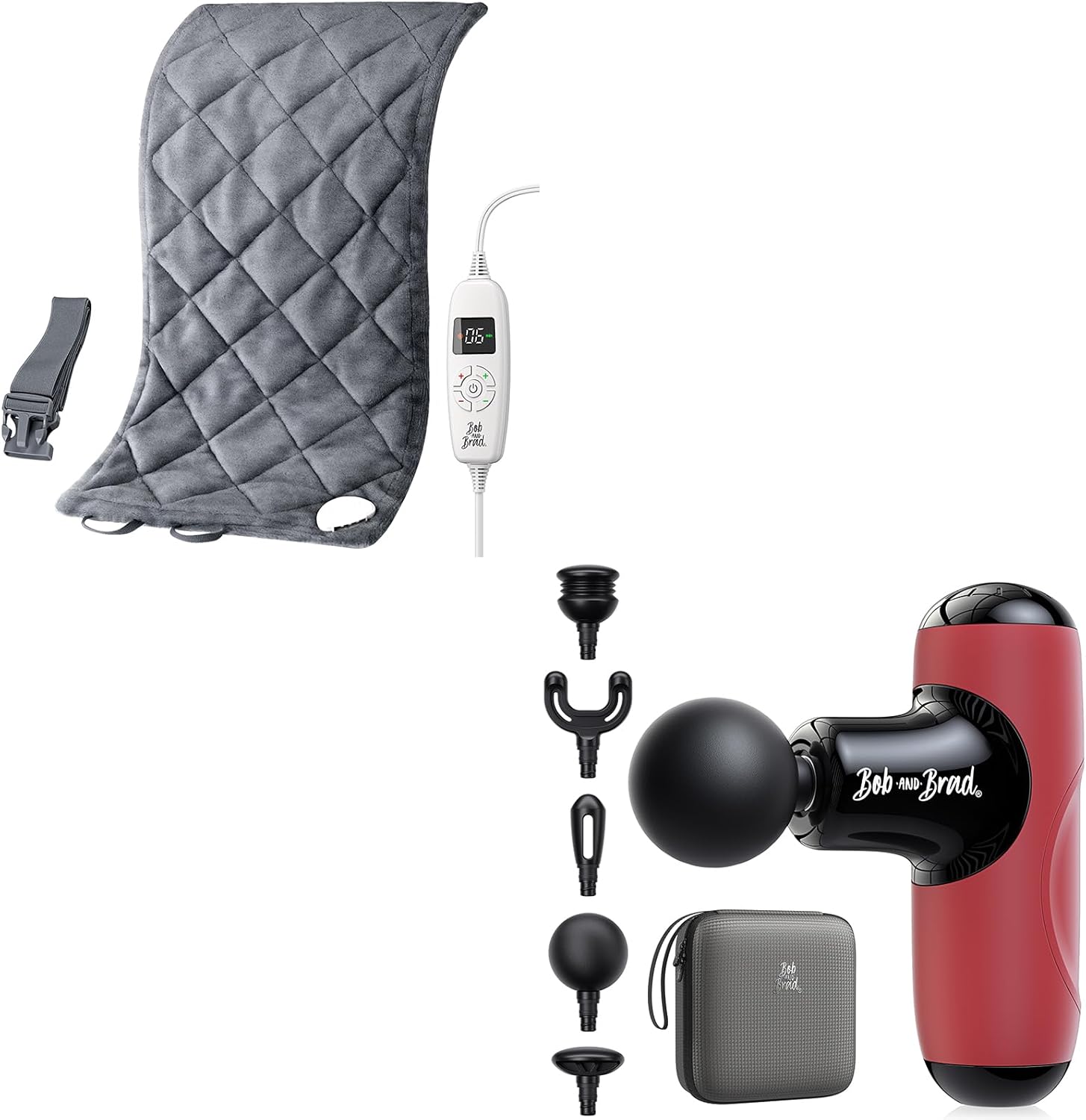BOB AND BRAD Q2 Mini Massage Gun (Red) and Weighted Heating Pad 12″x24″ (Gray)