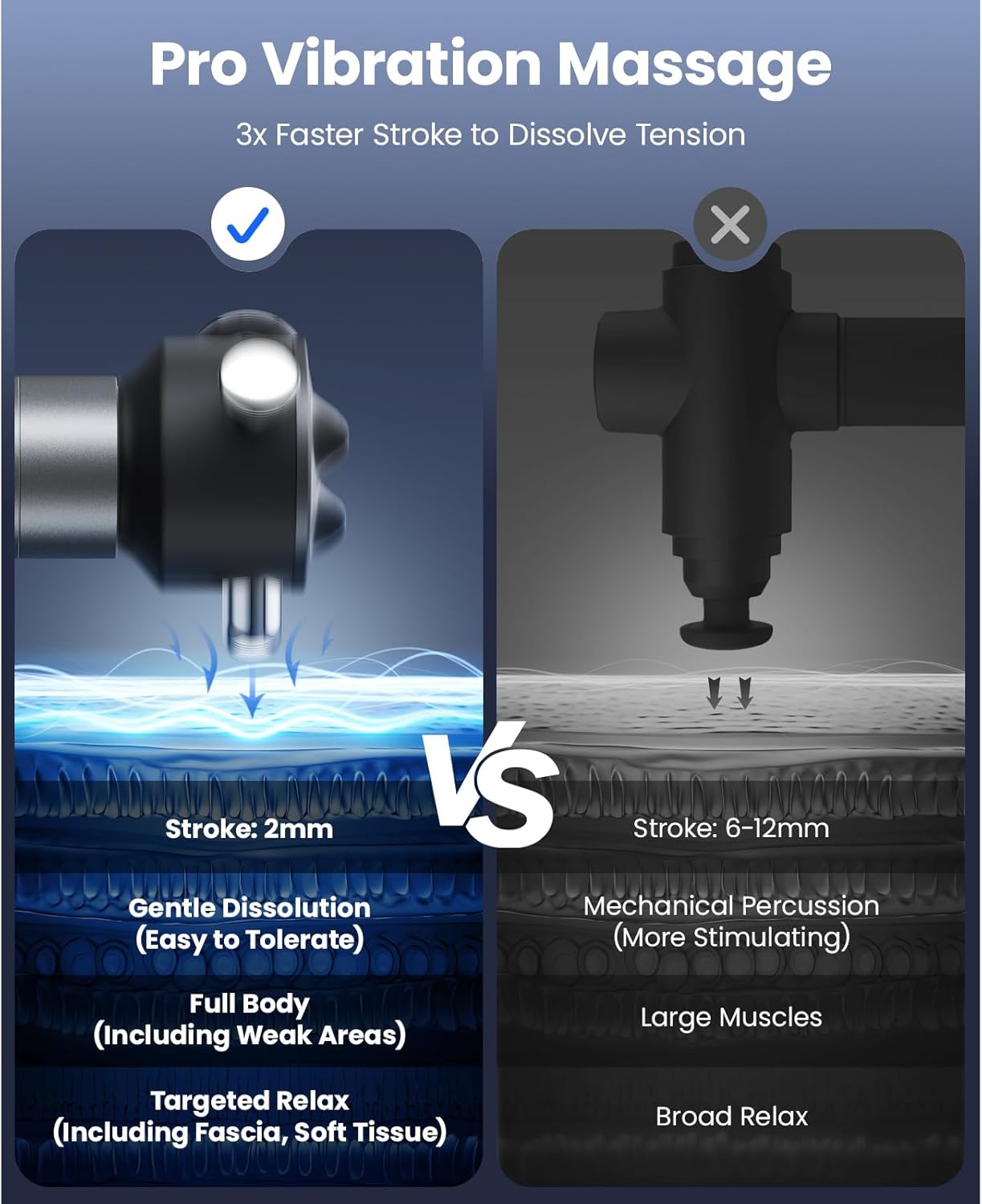 Professional Quick-Relief Massager: The VibeFlow massage gun uses 160Hz high-frequency vibrations and strikes 3-5 times faster than traditional percussive guns. It rapidly & deeply relieves muscle fatigue, soreness and stiffness. Safe for all body areas except the head, including sensitive zones like elbows, wrists, and shoulders. Unlike traditional massage guns (designed for larger muscles), it delivers gentle yet effective vibrational relief, avoiding excessive pressure on delicate areas.
