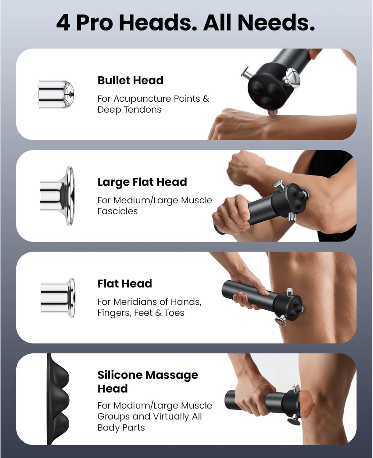 1 4-Speed Deep Relief 2 Powerful Vibration 3 Long-lasting Power 4 Effortless Control