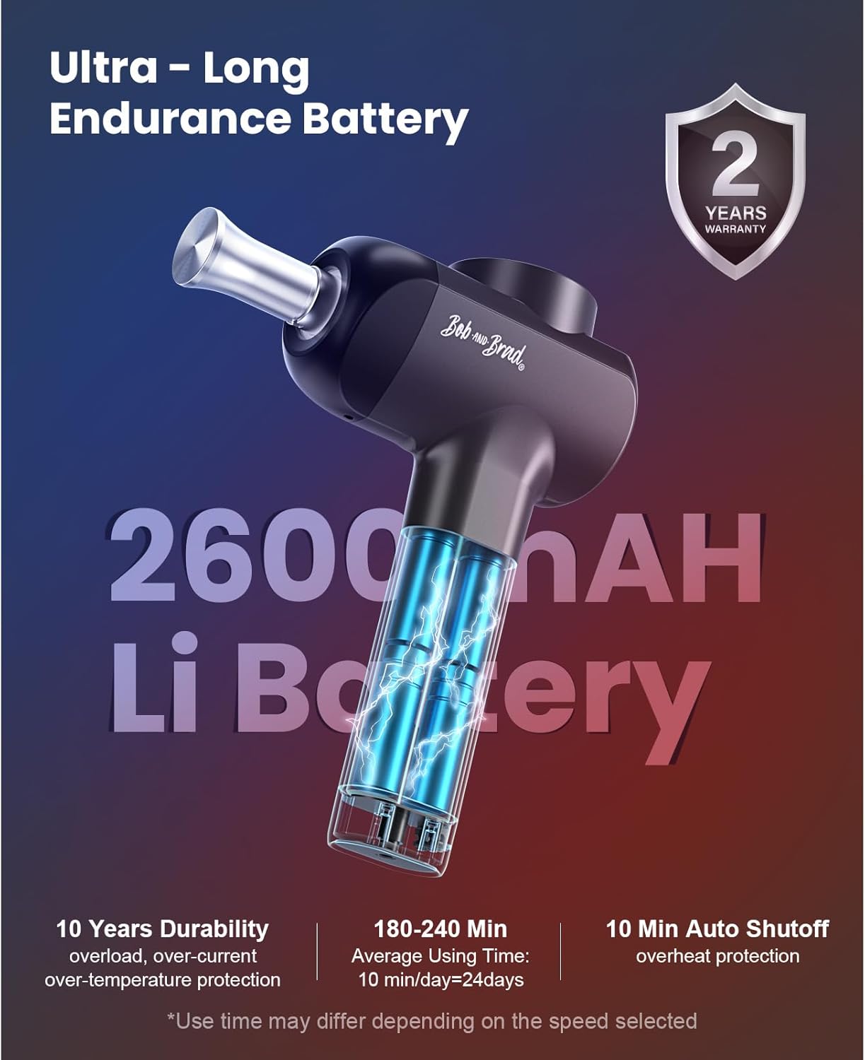 5-Customizable Massage Experience: The ability of this Bob and Brad heat and cold massage gun to tailor the massage experience with adjustable 5 speeds of rpm(2000,2300, 2600, 2900, 3200) for a more personalized approach to muscle recovery. The extended long ergonomic handle of 9.5inches design and weighs only 1.9 pounds for ease of use.