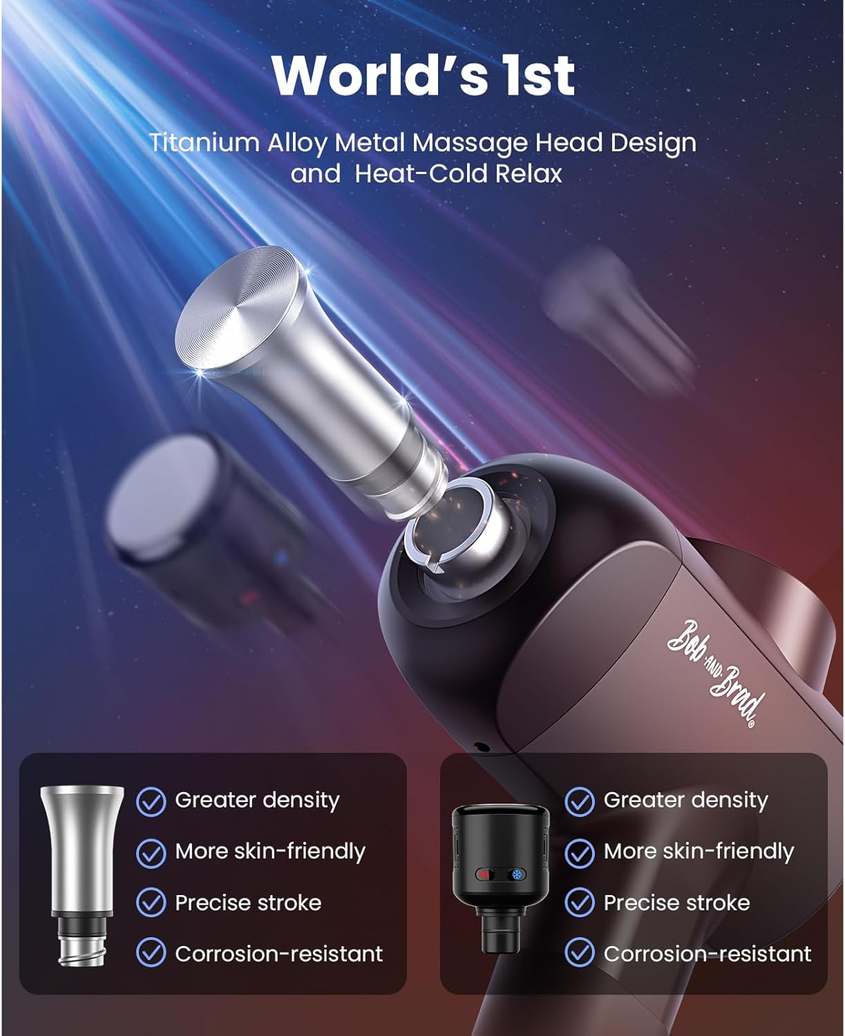 Auto Heat-Cold Head and Innovative 100% Titanium Alloy Metal Head, Dual Therapy Experience : 2025 Brand New Upgraded Bob and Brad X6 Pro Max Deep Tissue Massage Gun designs for all athletes and fitness enthusiasts! The auto heat-cold massage head warms up and gets cooling just in seconds, and the exclusive metal head to better target the muscle deeply, which both brings a more personalized and precise massage.
