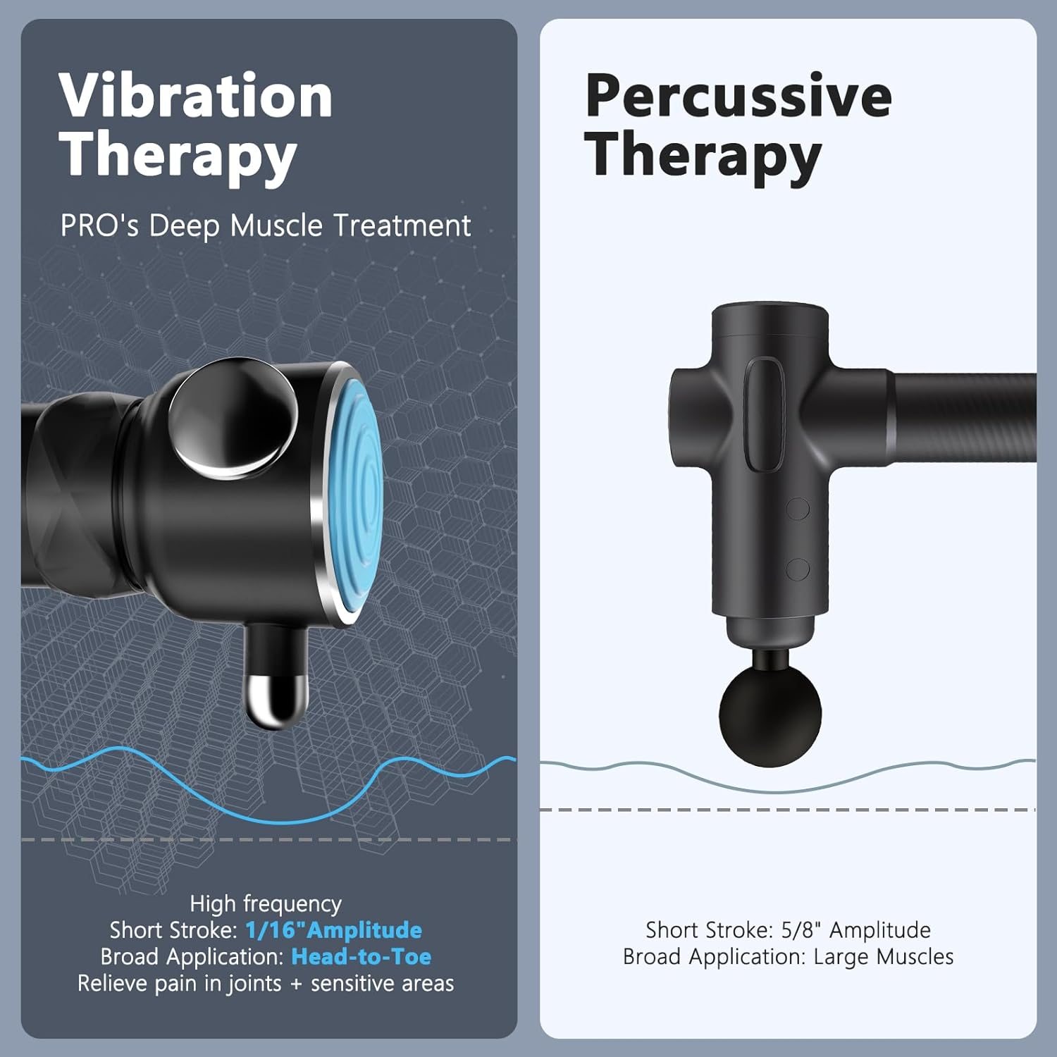 Powerful Treatment Power: HYAKO R1 Pro (3.5×3.5×8 inches), weighing just 1.7 lbs, with a vibration frequency of 5500-7500 RPM/Min, is 3-5 times higher than most massage guns on the market. It’s applicable for any body part and particularly friendly and accurate for relieving conditions like arthritis, sciatica, and plantar fasciitis. Our latest high-quality vibrational therapy tool