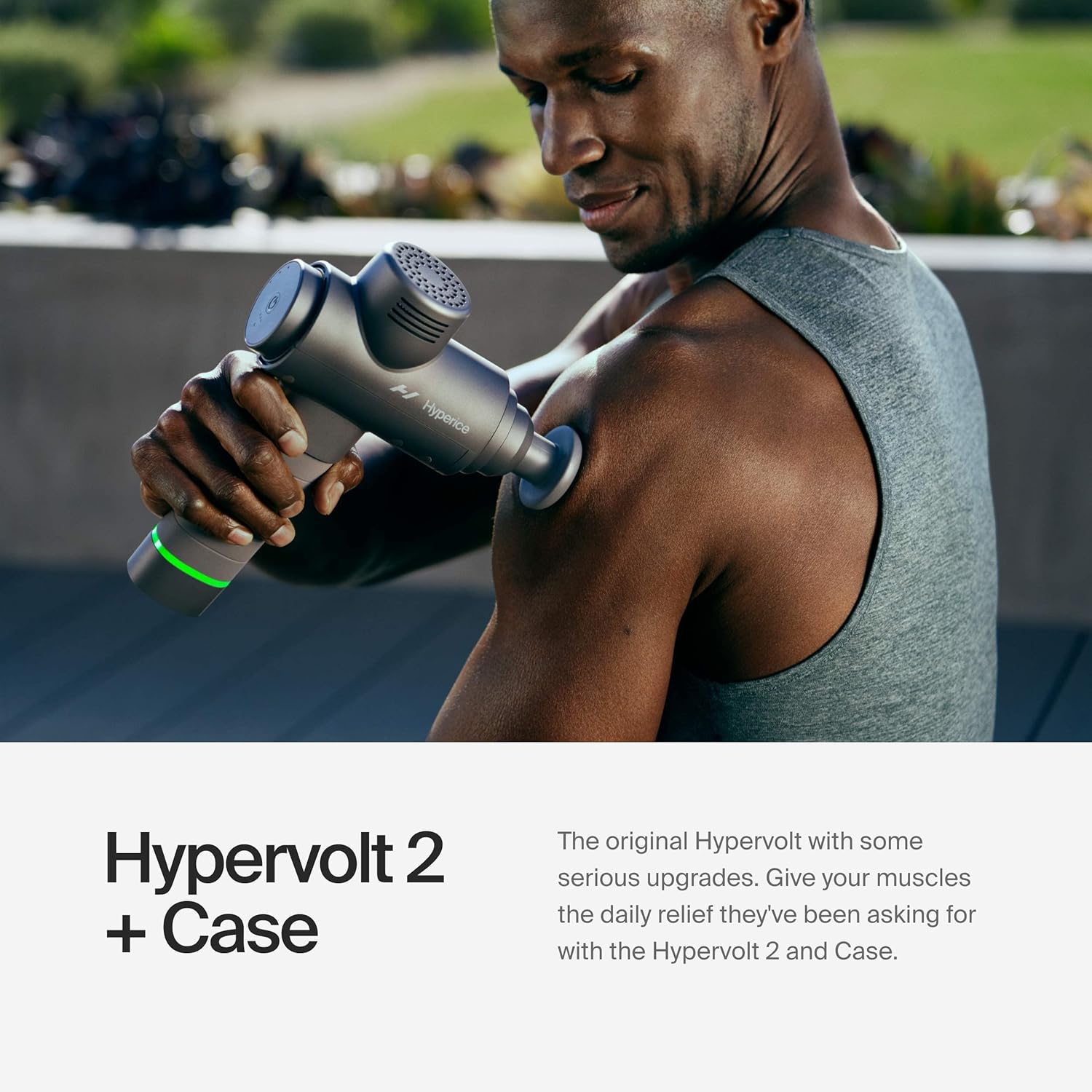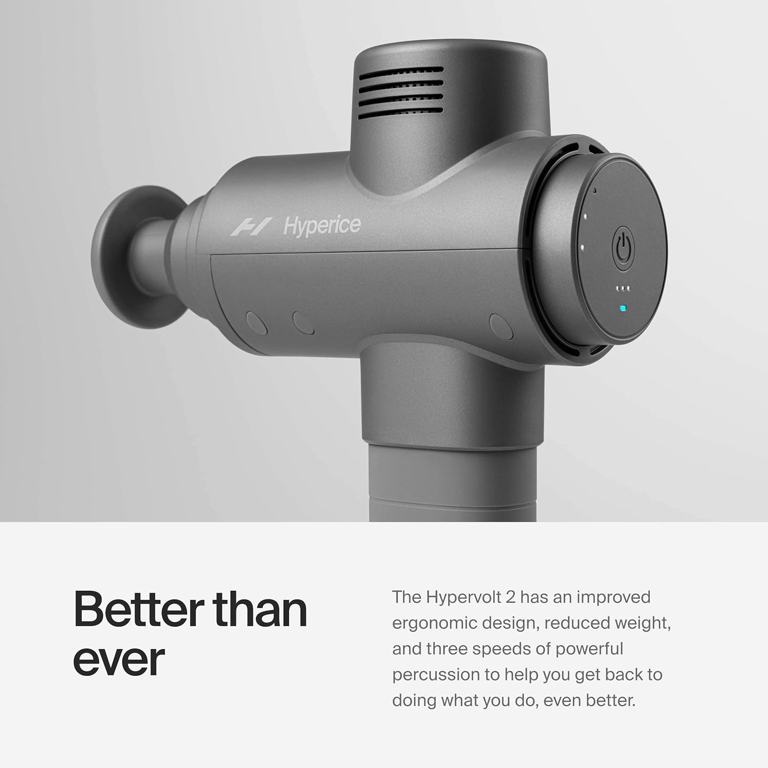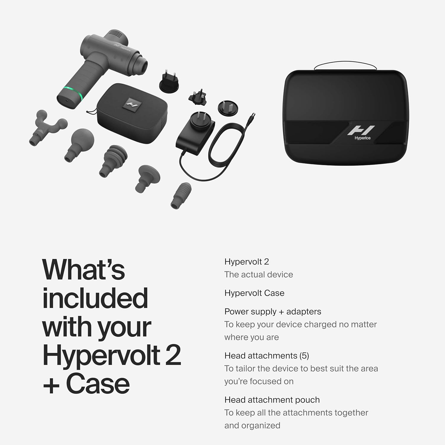 Hypervolt 2 – Featuring Quiet Glide Technology – Handheld Percussion Massage Gun | 3 Speeds, 5 Interchangeable Heads | Helps Relieve Sore Muscles and Stiffness (Hypervolt 2 w/Carrying Case)
