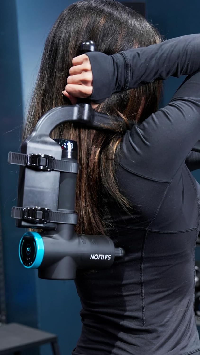 Allows user to stay in a strong ergonomical position while using massage gun with total control over device