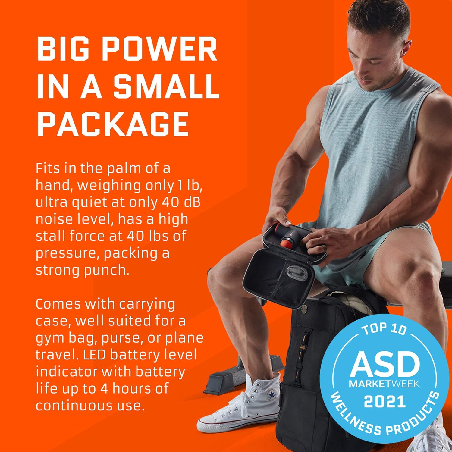 Has a high stall force at 40lbs of pressure so it still packs a strong punch suitable to ease muscle soreness and stiffness