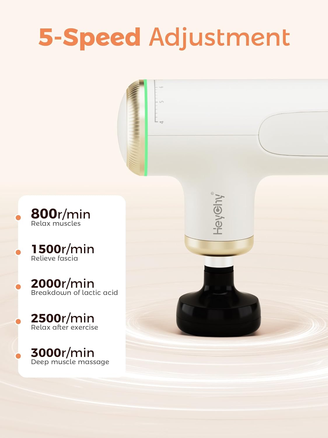 5 Adjustable Speeds (800-1500-2000-2500-3000 RPM): Massage gun for athletes 800-3000 rpm linear speed adjustment, switch 5 levels of massage intensity, from gentle awakening to strong percussion, for different muscle groups, aiding in sore muscle massage, relaxing and shaping different muscle parts