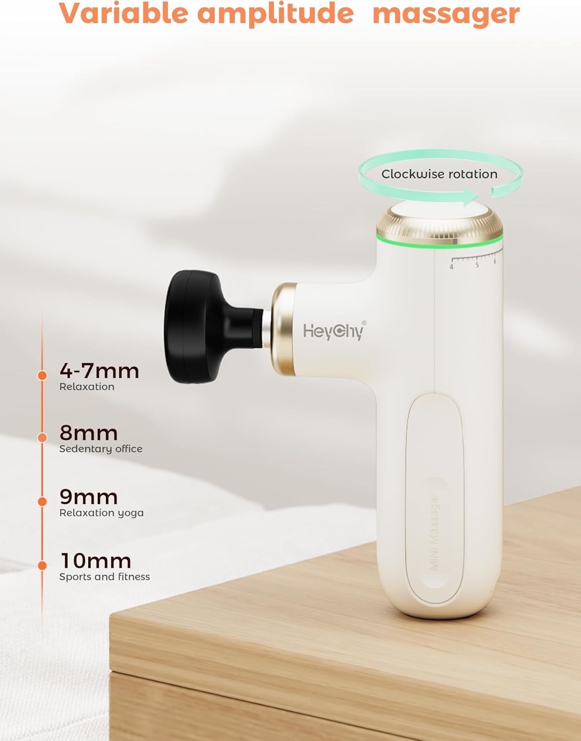 Adjustable Amplitude Mini Massage Gun: The advanced deep Tissue massage guns offer a wide range of adjustable amplitudes, from 4mm to 10mm that suit both your body’s various parts and accommodate different groups. Equivalent to having multiple types of massage guns.