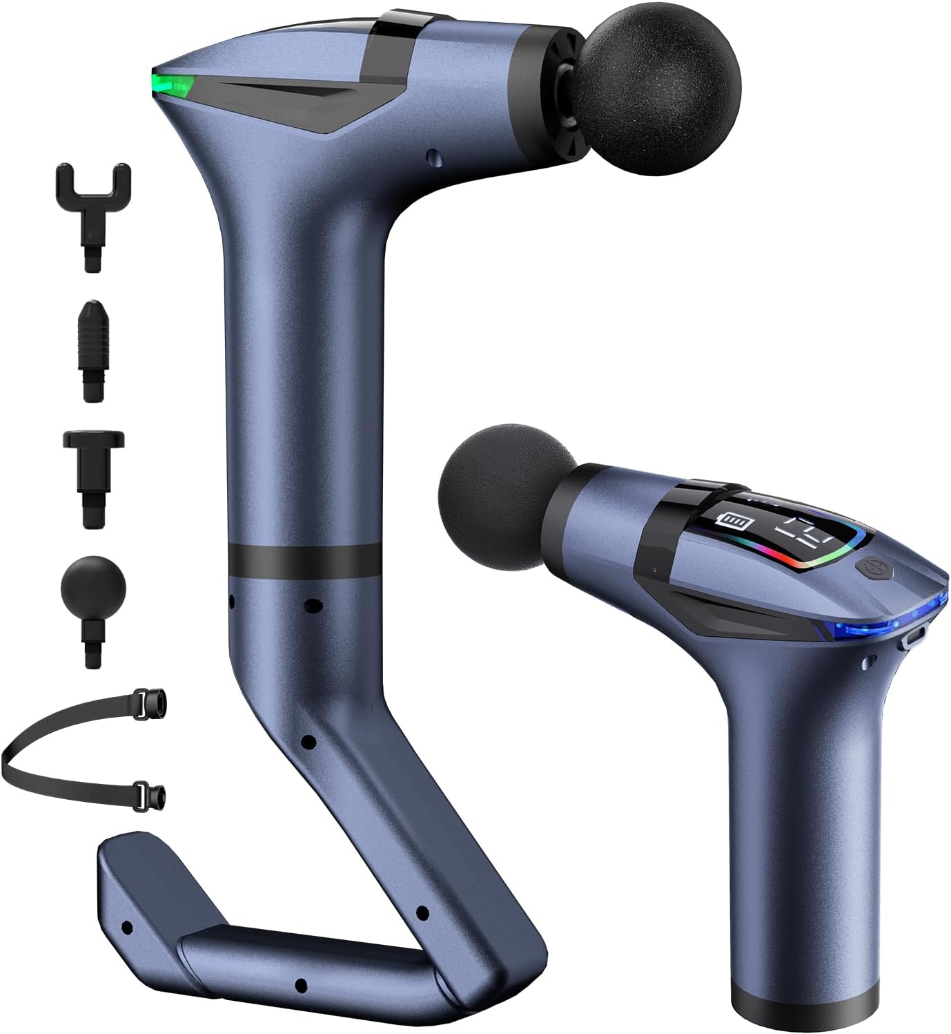 Lightweight and Portable with Carry Case: This percussion muscle mini massage gun is ultra-light body of only 1.0 lbs(450g) with ergonomic handle and carrying, you can enjoy professional massage experience at any time in the gym、office、home、travel.