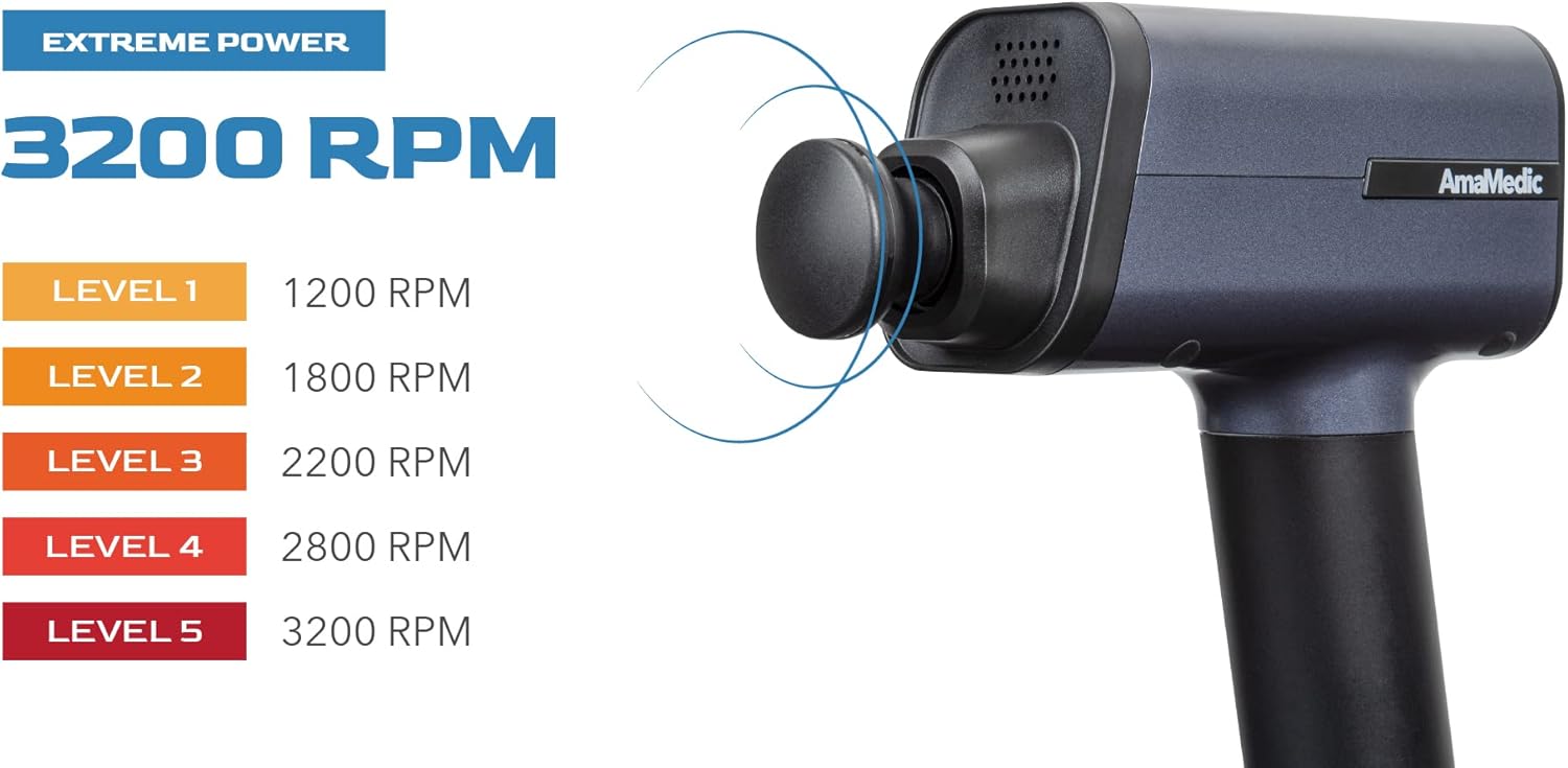 3200 PRM : Experience the deep tissue massage to the core muscle with vibration of 3200 RPM. To achieve 3200 vibrations per minute during operation.