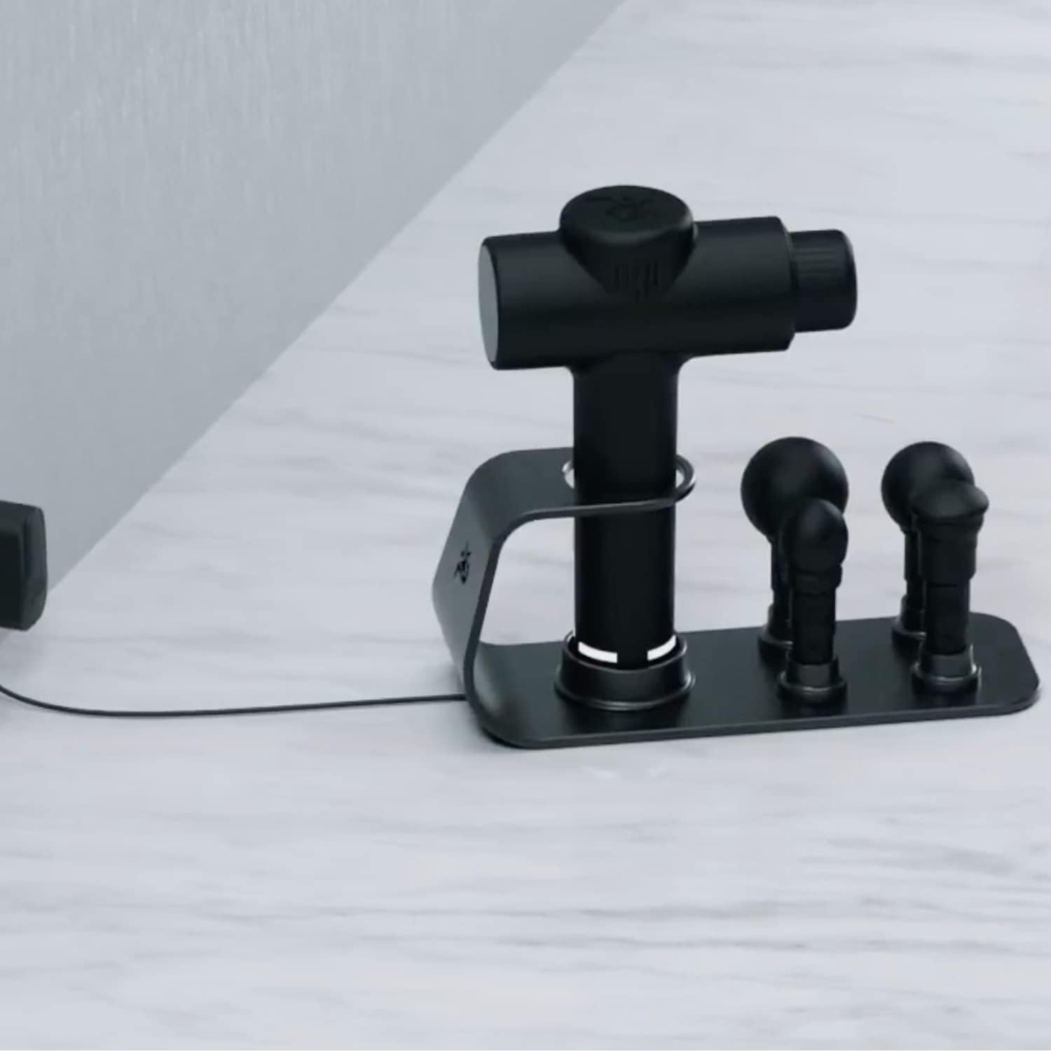 This 2-in-1 charging station is the perfect companion for your MVP-2000 Percussion Massager. Premium technology quickly charges your massage gun while providing easy access to your device and ProTips. Ultimate convenience Keep your MVP+ Massager and 4 ProTips organized and at the ready when you need them. After your treatment, pop your MVP+ in the PowerUp for a full charge in less than an hour. Massage therapy has never been more convenient and never looked so good. Looks great anywhere You will love the durability and beauty of the PowerUp Charging Station. The low-profile black anodized aluminum design fits seamlessly with any home, office, or gym decor. MVP+ Masssage Gun Not Included