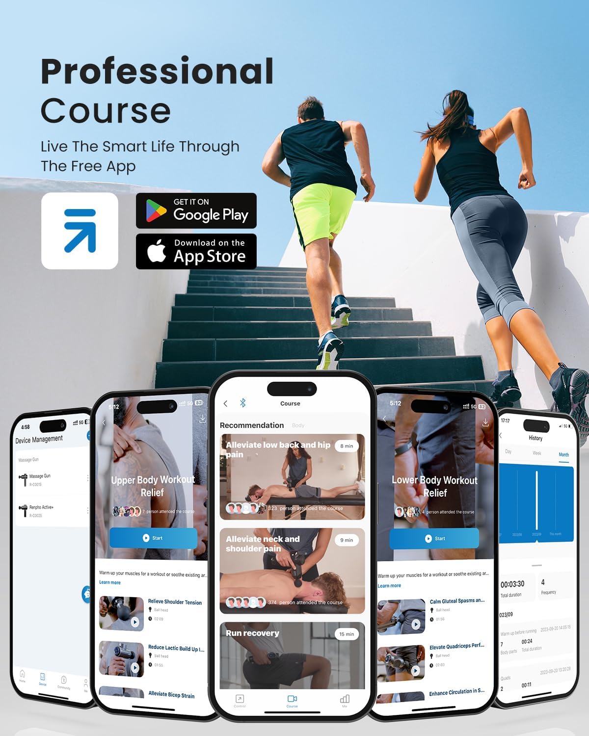 Upgrade Powerful Active Massage Gun Deep Tissue: We are dedicated to offering a more exquisite and intense sport massage gun for back pain; With premium metal housing and a super powerful brushless motor, the RENPHO 2023 New muscle fascia gun delivers high penetration and reaches and massages deeper in the muscle tissue, relieves muscle fatigue and pain