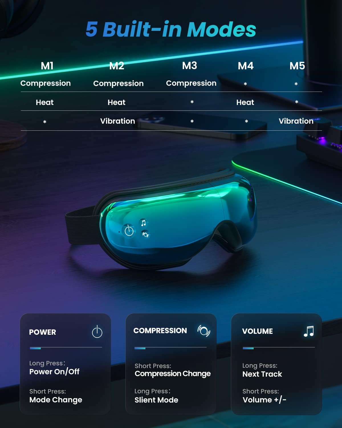 Comfortable Heating Massage: RENPHO eye massager built-in heating pads provide a comfortable temperature between 104 and 107 degrees Fahrenheit (40℃-42℃). This eye device is not suitable for individuals who have undergone eye operation, retina condition, cataract, glaucoma, etc.