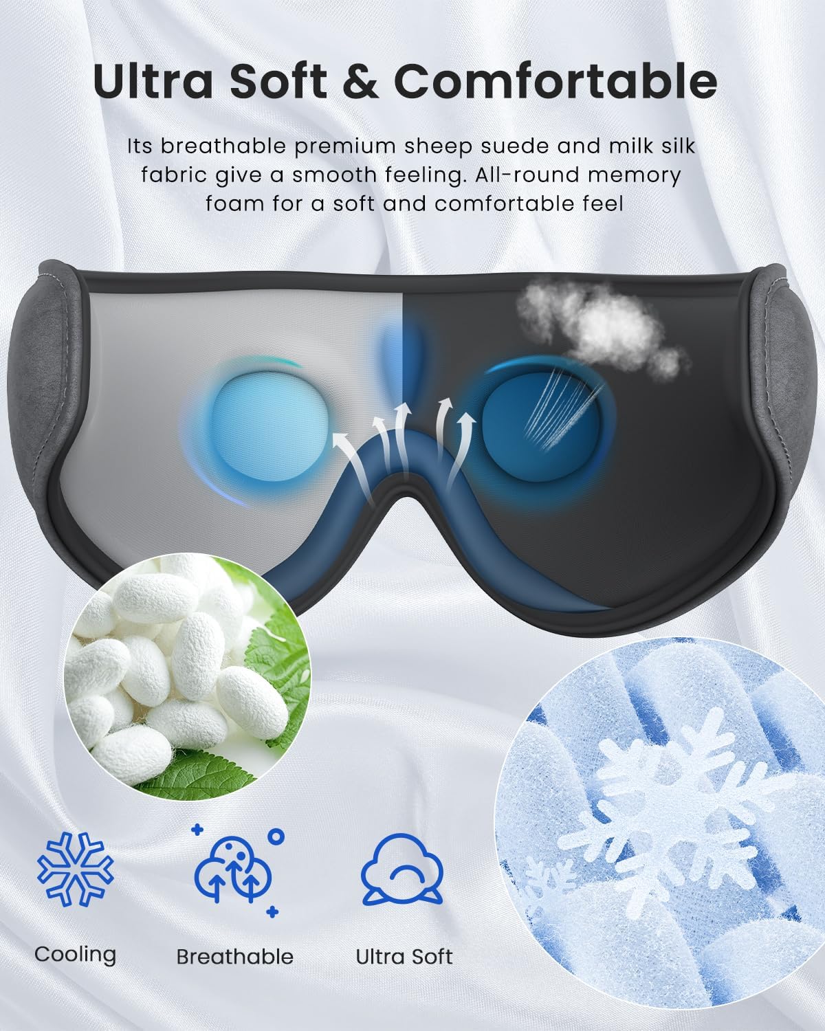 New upgraded: Our Bluetooth sleep mask Unlike most other brands on the market, RENPHO sleep headphones boast an air sponge cushioning pad that can be detached for easy cleaning.our thickened memory foam reduces pressure on the ear when sleeping on the side. The speakers are movable so that you can adjust them to fit your ears when you sleep on your side.