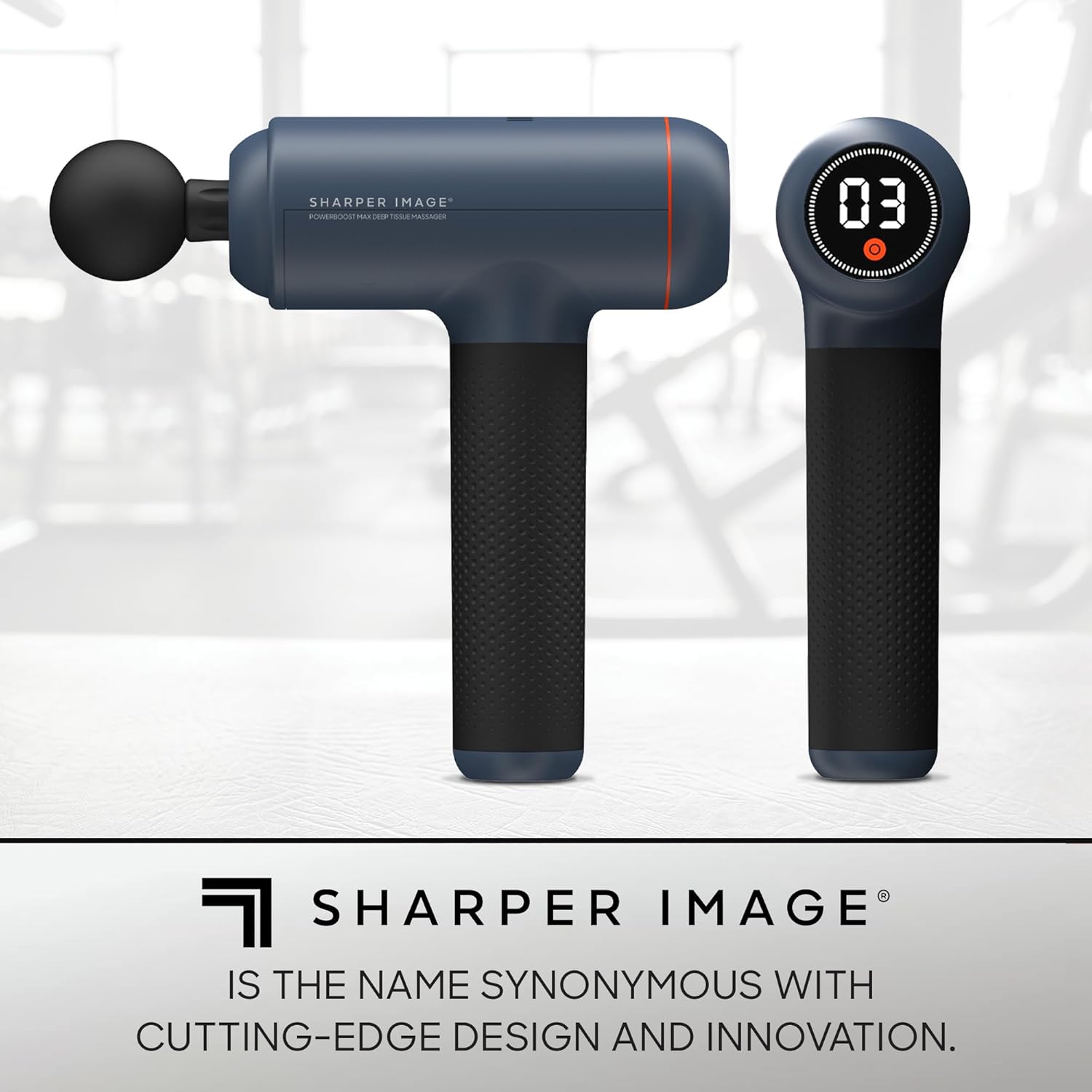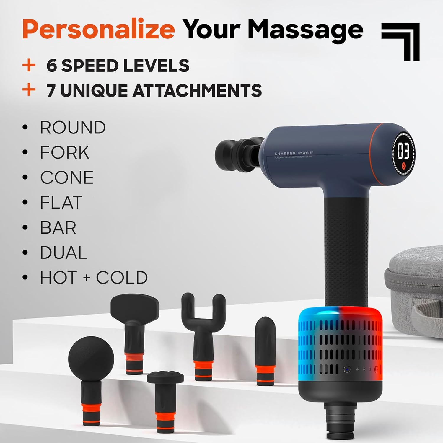 Sharper Image Powerboost Max Deep Tissue Massage Gun Bundle with Hot & Cold Dual Temperature Attachment