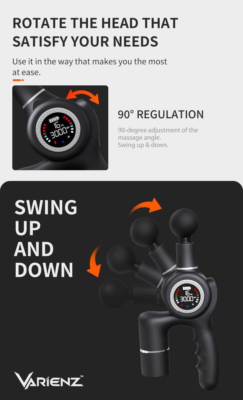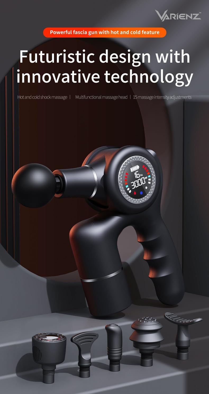VM PRO Powerful Body Massage gun, Deep Tissue Fascia Gun, 15-Speed, 90° Adjustable, Hot & Cold Therapy (Extra Replaceable Battery)