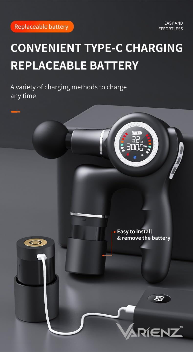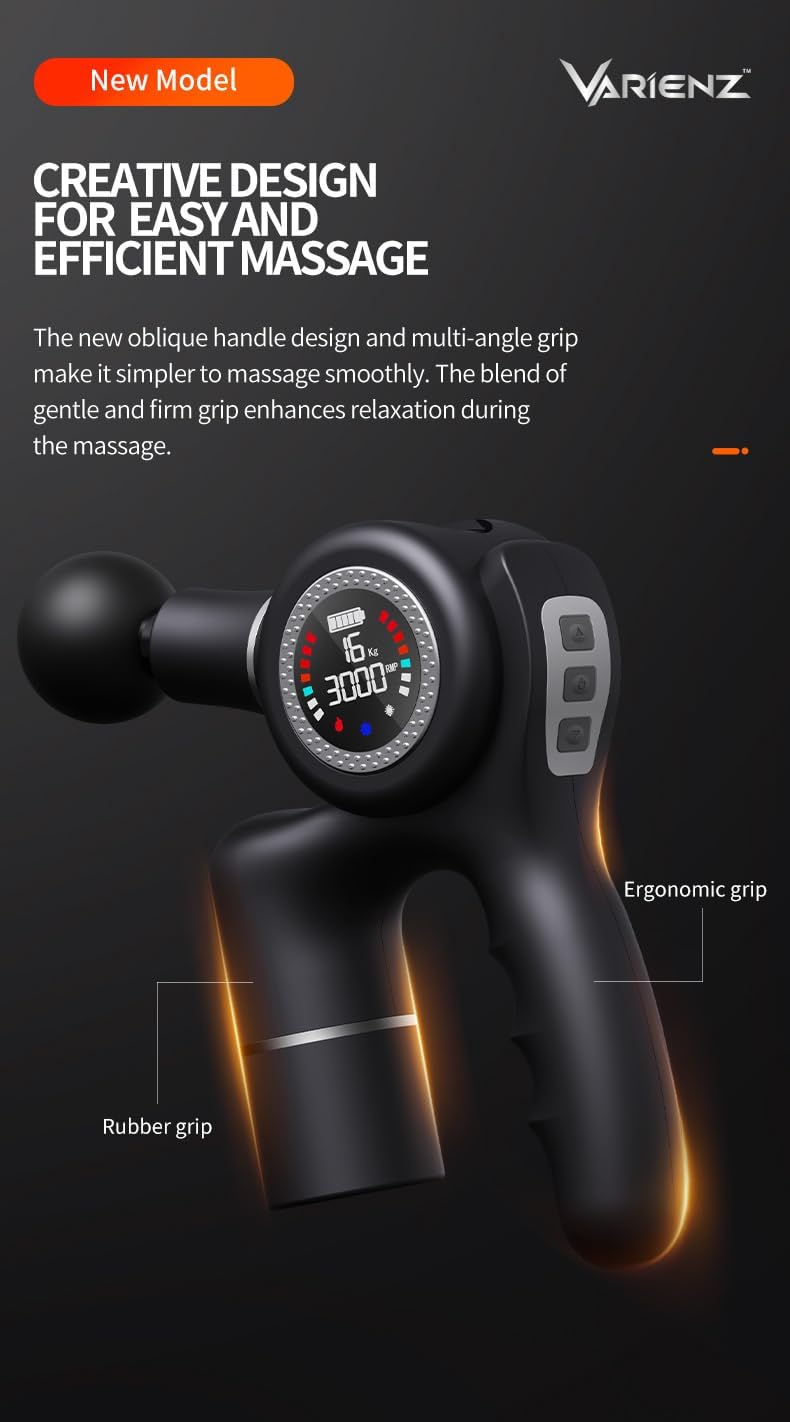 Intuitive Display & Easy Controls: Monitor speed, temperature, and battery on a clear LED screen. Easily adjust settings for a personalized massage experience with simple, responsive buttons.