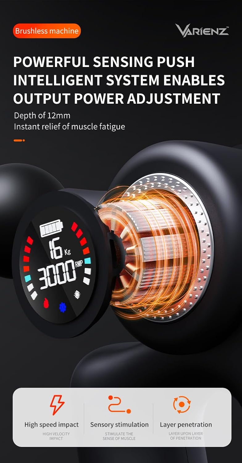 Quiet, High-Torque Brushless Motor: Experience professional-grade massage without loud noise. The advanced brushless motor offers strong, consistent performance while staying quiet for home, gym, or office use.