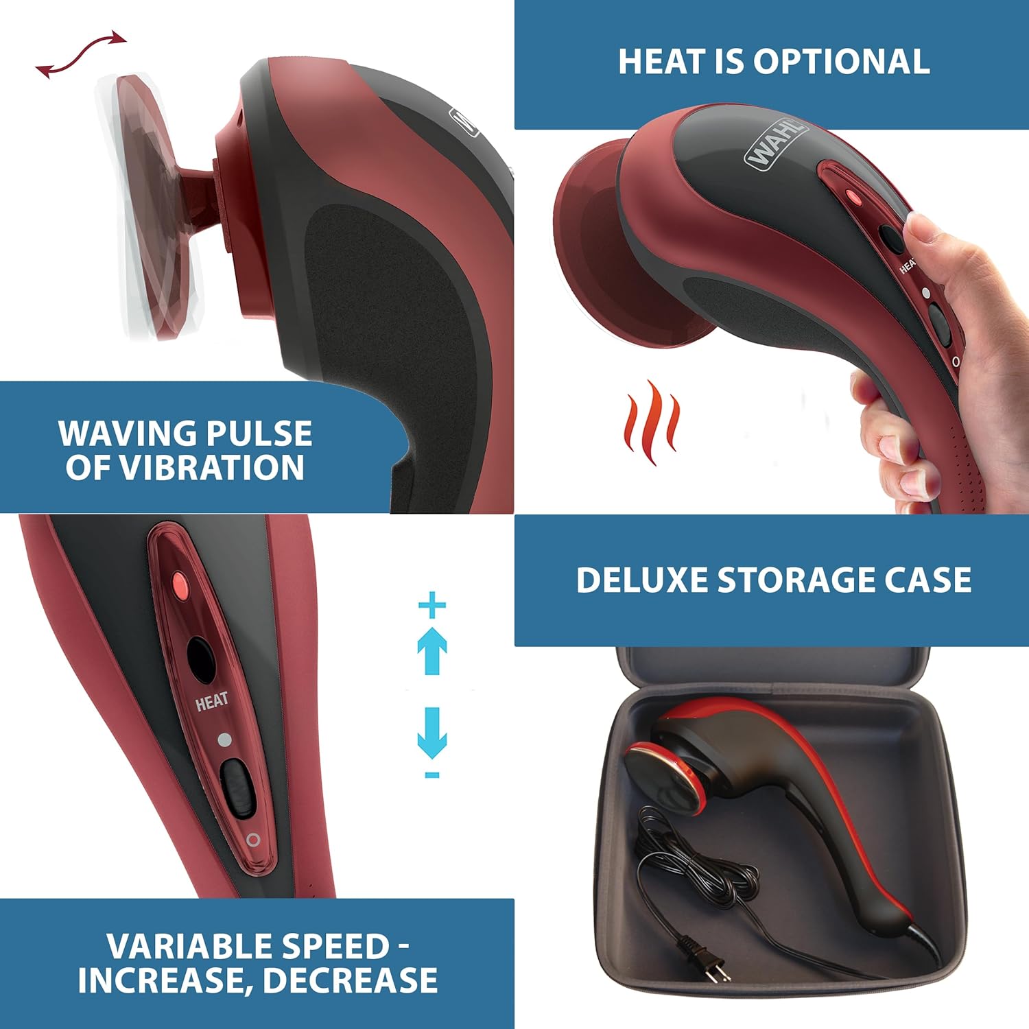 Variable Intensity: Features a variable speed dial for gentle to intense massage; Reduces pain and fatigue from joints, sports injuries, arthritis, muscle knots, stress, and improves flexibility