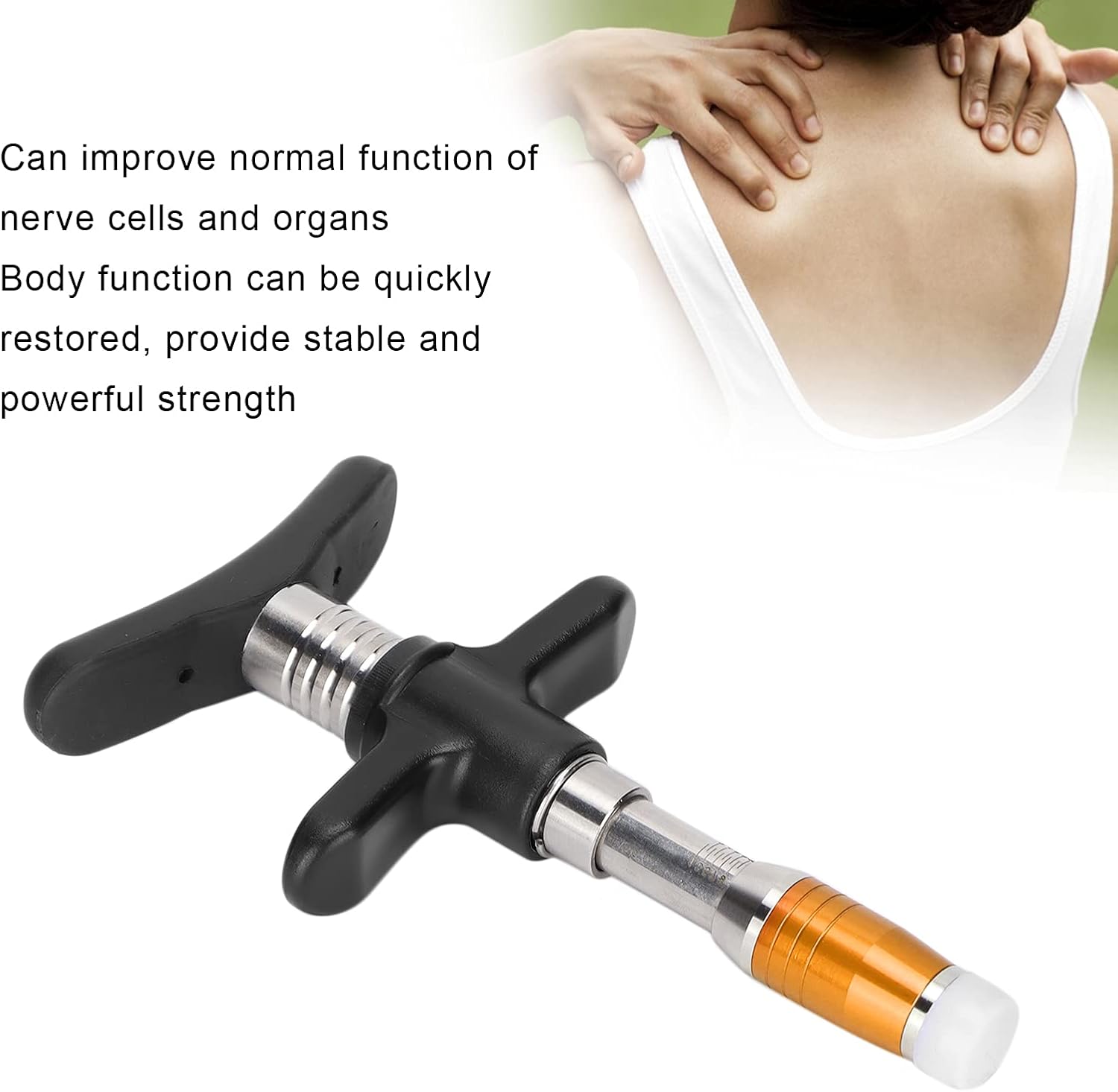 ZJchao Chiropractic Adjustment Tool, 10 Levels Manual Single Head Spinal Massager Hand Back Massage Tool Gun Device Portable Chiropractic Adjustment Tool (Gold)