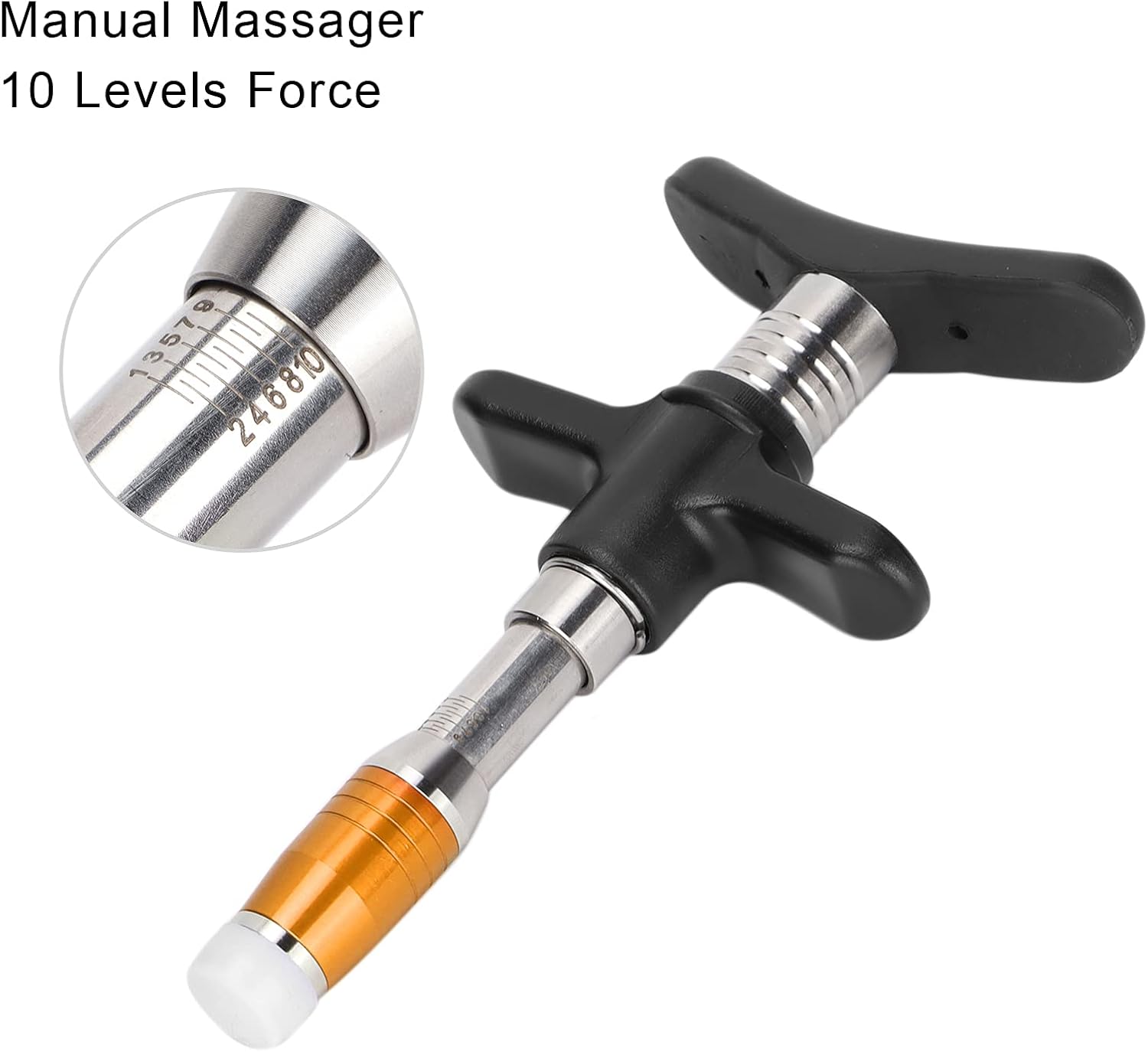 10 Level Setting: The manual chiropractic device has 10 adjustable levels, i.e. H. 30N, 60N, 90N, 120N, 150N, 180N, 210N, 240N, 270N, 300N. With 4 functional heads: Exquisite workmanship, equipped with four interchangeable heads, one machine can be used for multiple purposes and meets the needs of different people.