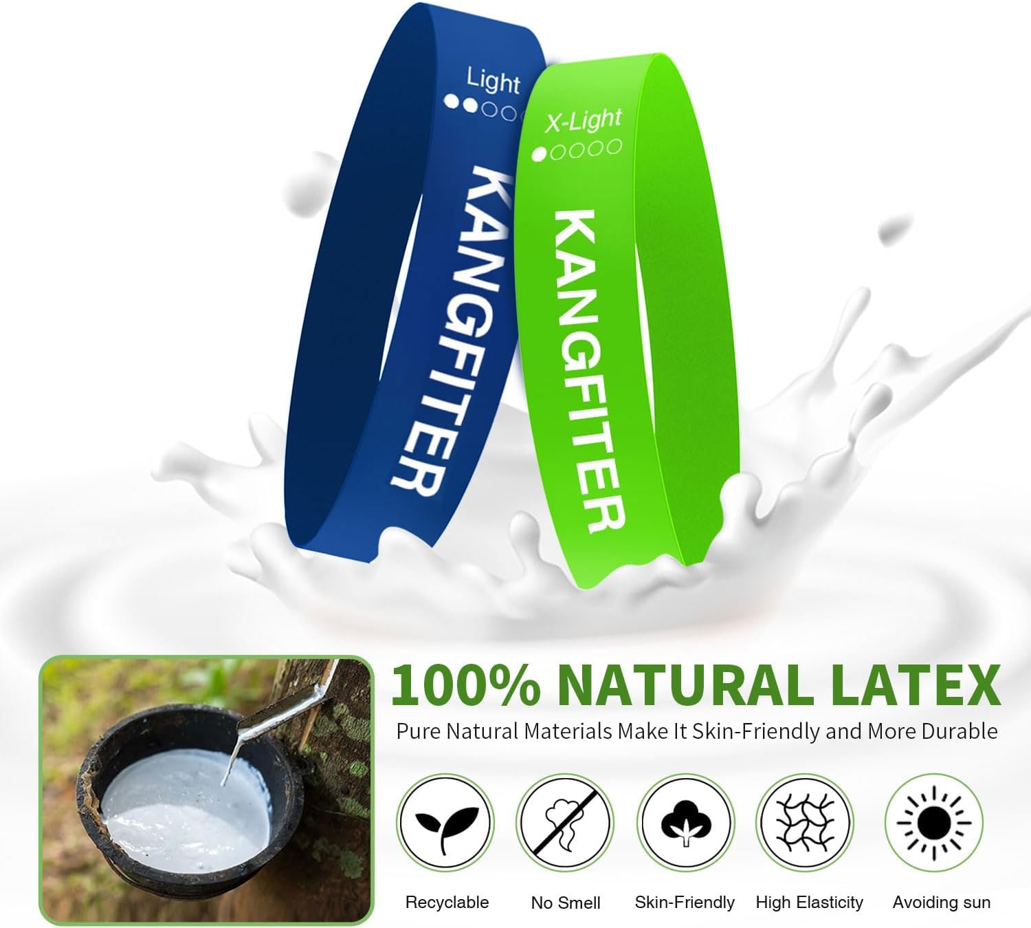 【NATURAL LATEX MATERIAL】: KANGFITER resistance bands are made of durable and skin-friendly natural latex, providing a premium and stable workout experience.All exercise bands are thoroughly tested before shipping.