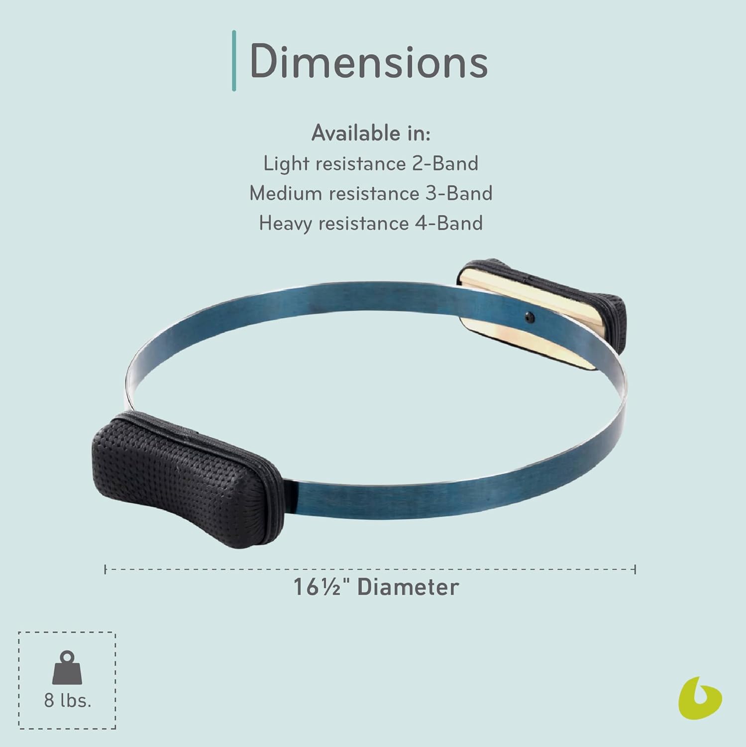Enhance your Pilates workout with the Balanced Body Spring Circle, a faithful reproduction of the Magic Circle designed by Joseph Pilates. This Pilates circle is crafted by hand from tempered spring steel with padded wooden handles, ensuring exceptional durability and comfort during every exercise. It has a 16 1/2-inch diameter and is available in 3 resistance levels: light (2 bands), medium (3 bands), and heavy (4 bands). Each number correlates to the number of bands in the circle, so you can customize your workout intensity to suit your fitness level and goals.