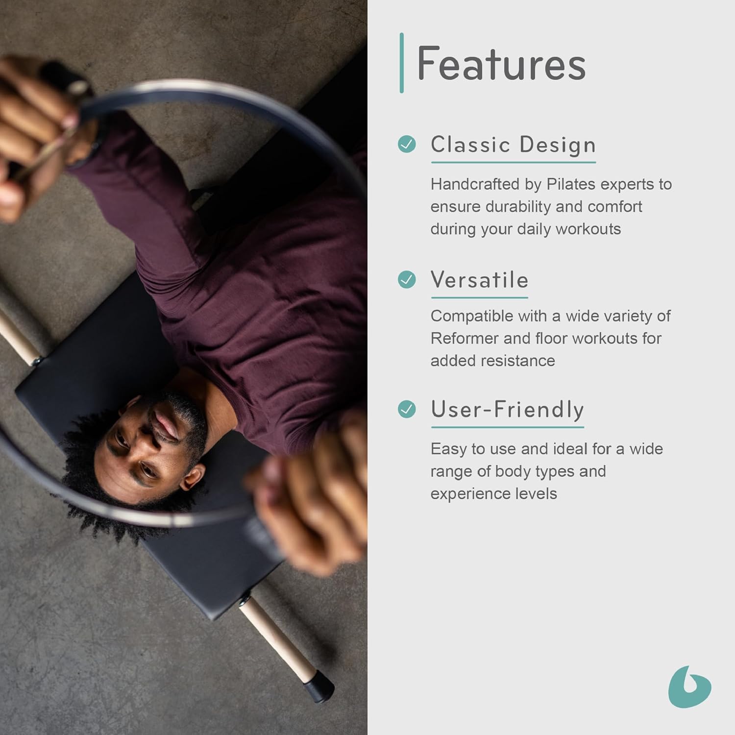 EXERCISE HOOP: The Balanced Body Spring Circle faithfully reproduces the Magic Circle designed by Joseph Pilates, ensuring an authentic Pilates experience that works with your Reformer workout or enhances your floor work.
