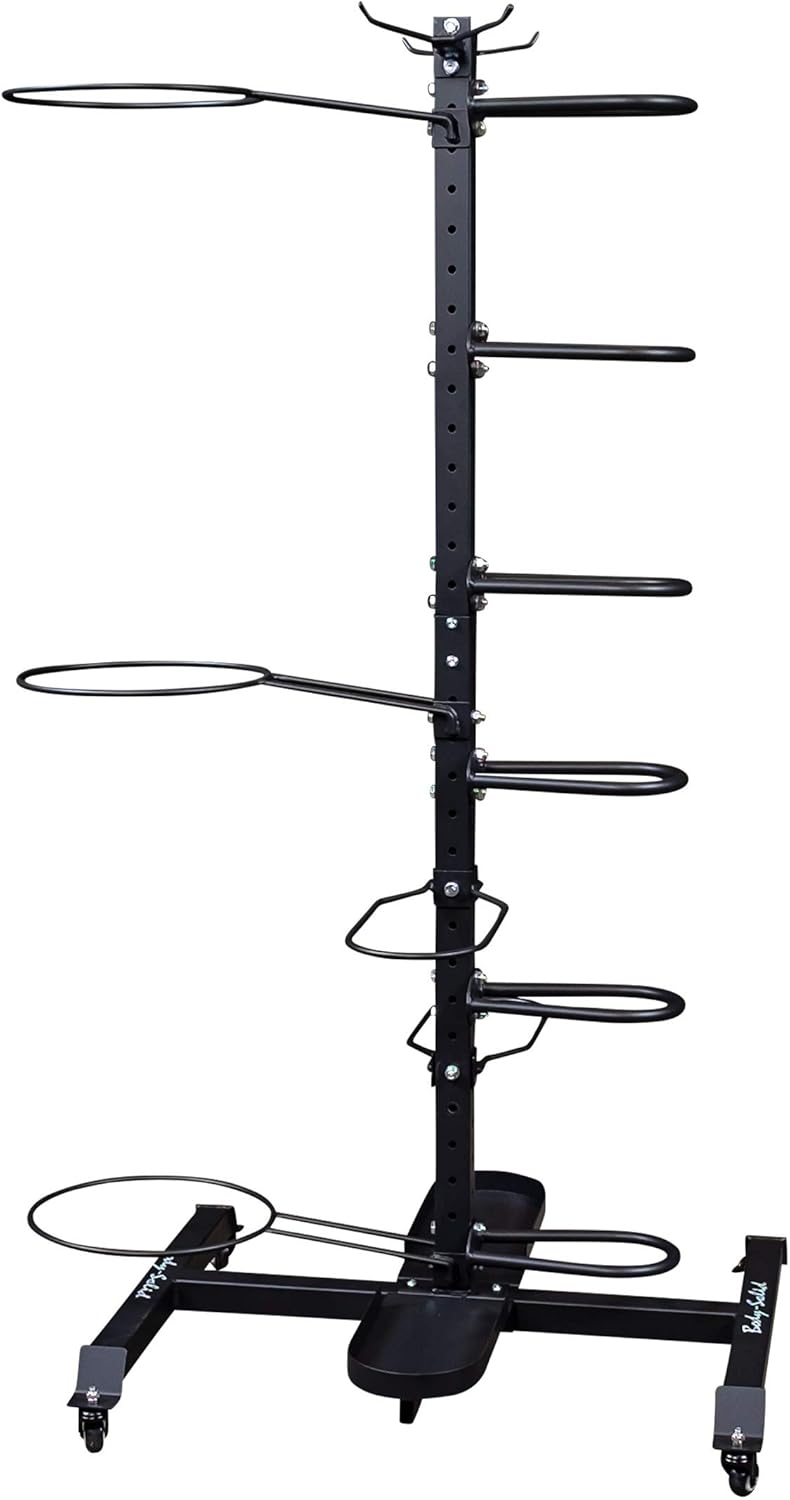 Body-Solid (GAR100) Compact Accessory Vertical Stand Rack for Organizing Medicine Balls, Weights Ball, Resistance Bands and Tubes, Jump Ropes, Foam Rollers, Yoga Mats, and more