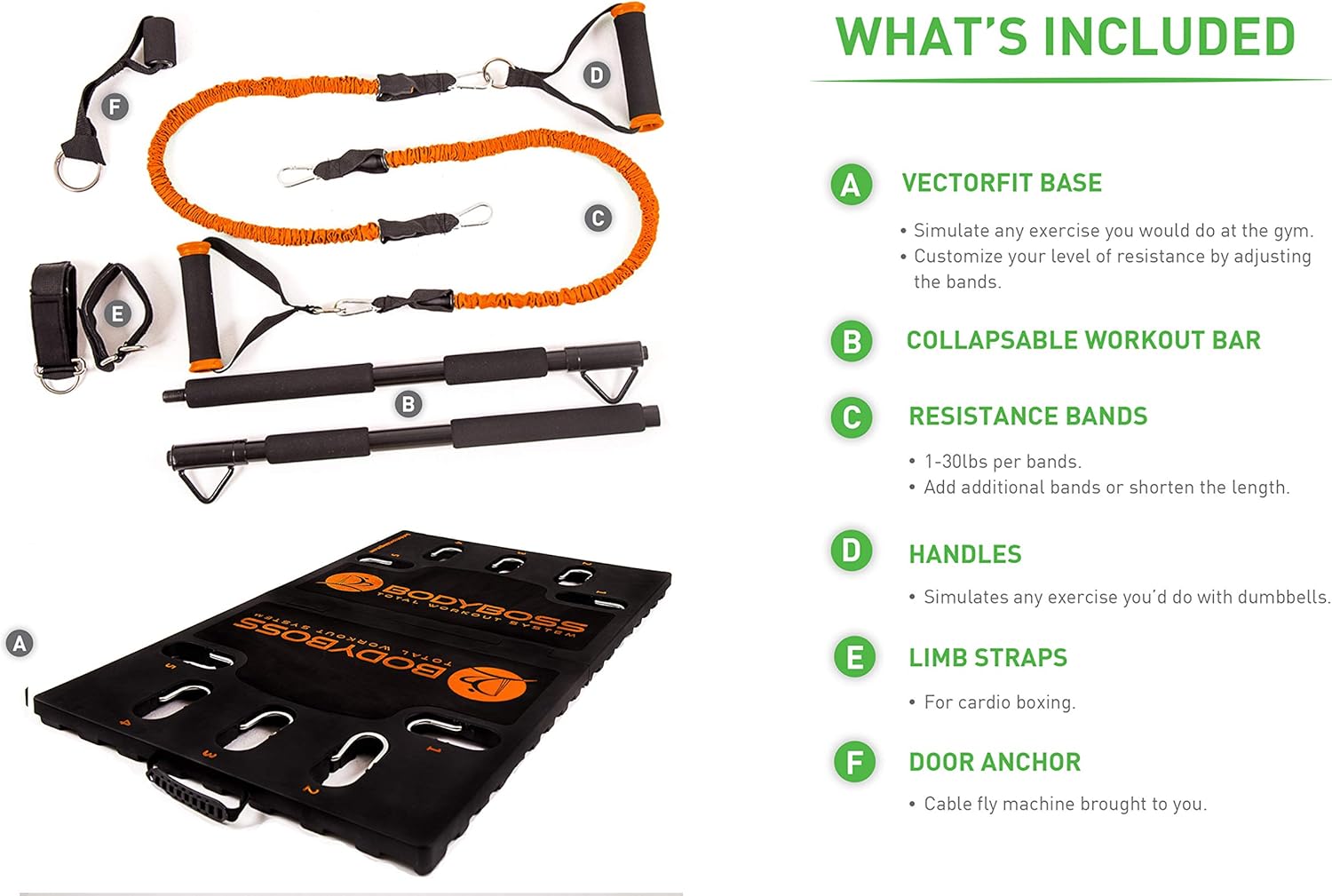BodyBossBodyBoss Home Gym 2.0 – Full Portable Gym Home Workout Package,