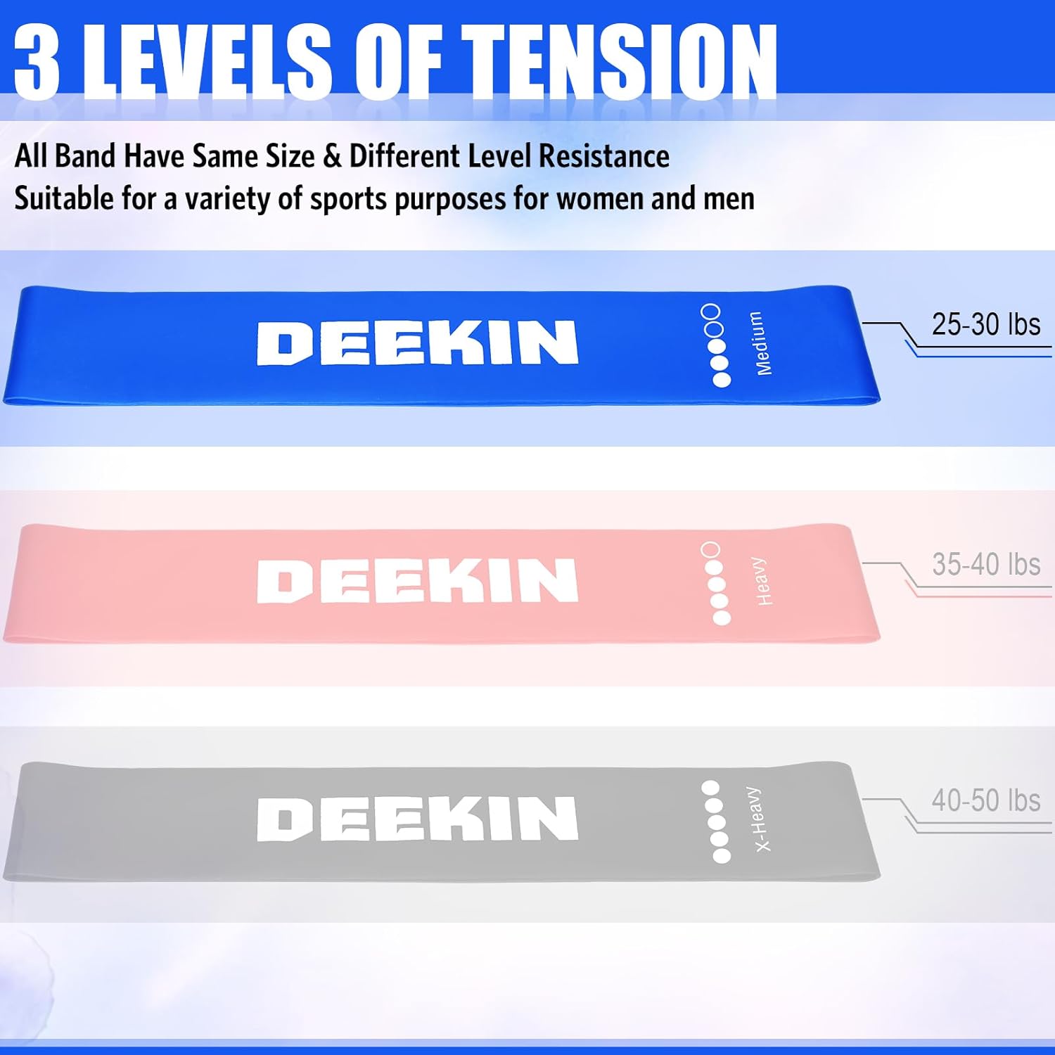 Versatile Tool for a Wide Range of Exercises: challenge your routine to a welcome diversity with our tension bands for exercise; They are incredibly versatile and can be incorporated into a wide assortment of exercises, providing functionality and effectiveness in one handy package; They can be a trainer for sport specific training, or a booster for body weight exercises, yoga, and Pilates; A fundamental attribute that caters to all types of athletes
