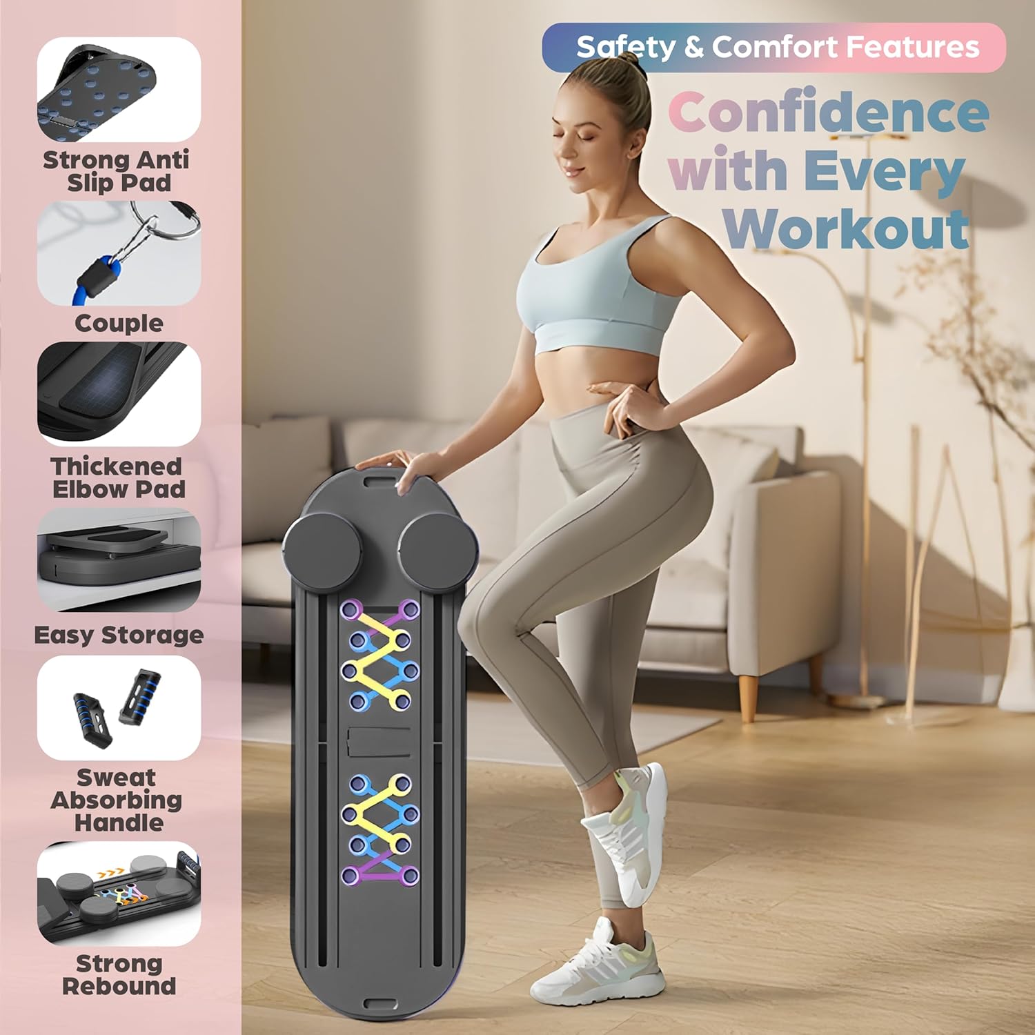 2025 UPGRADED COMFORT FEATURES: Enjoy our new rose pod cushioning system for joint support during floor exercises. The scratch-resistant bottom protects your floors.