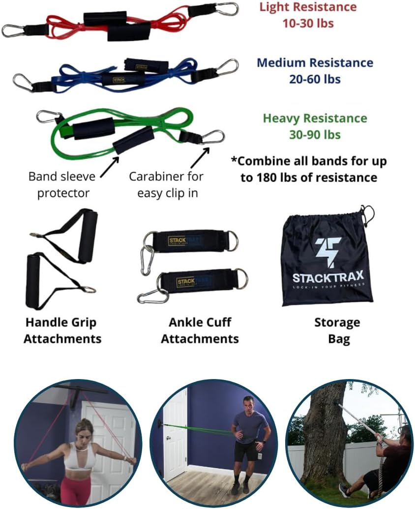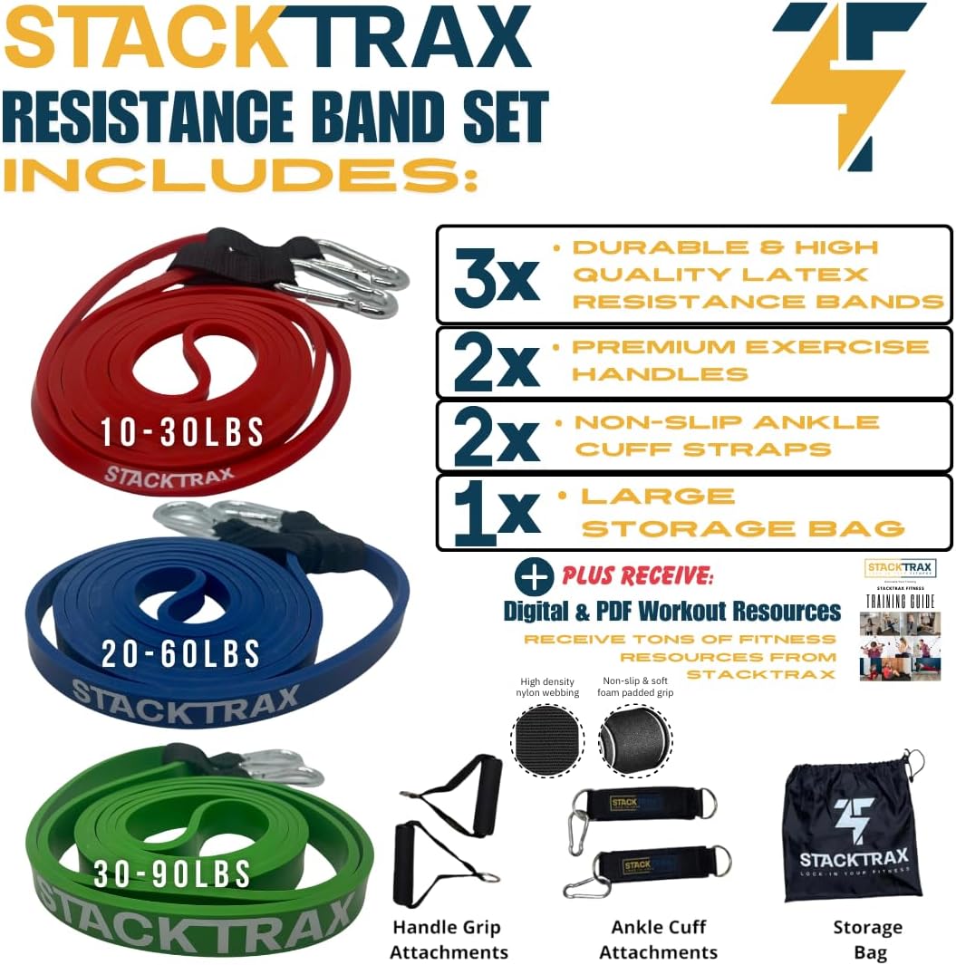 With StackTrax Fitness and it’s durable Resistive Band Set, create a full gym in your home. Creating endless variety to your training routine and bringing your fitness to another level.