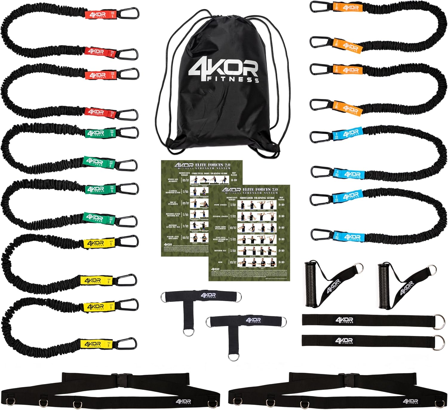 5 different resistance levels ranging from X-Light to X-Heavy to reach your personal strength and resistance goals. Band resistance levels: X-Light (Gray): 10lb, Light (Yellow): 25lb, Medium (Blue): 45lb, Heavy (Black): 70lb, X-Heavy (Red): 110lb