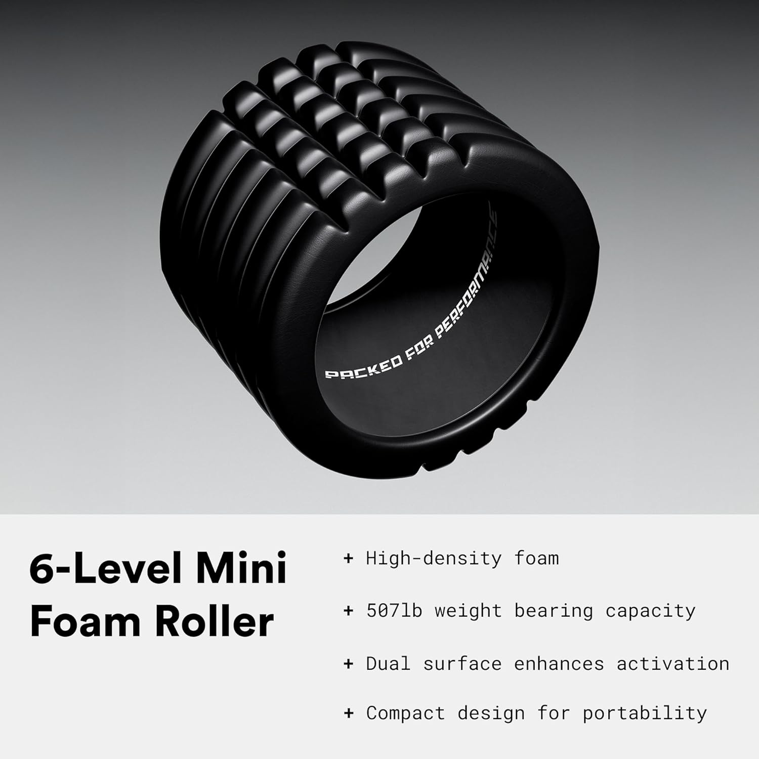 6-Level Mini Foam Roller: Featuring a patented design, high-density foam for deep tissue relief, and a 507lb weight bearing capacity, our foam roller is one of the world’s strongest mini foam rollers. Its dual surface enhances activation and recovery, while its compact design ensures portability. Built to perform anywhere, it’s the ultimate recovery tool.