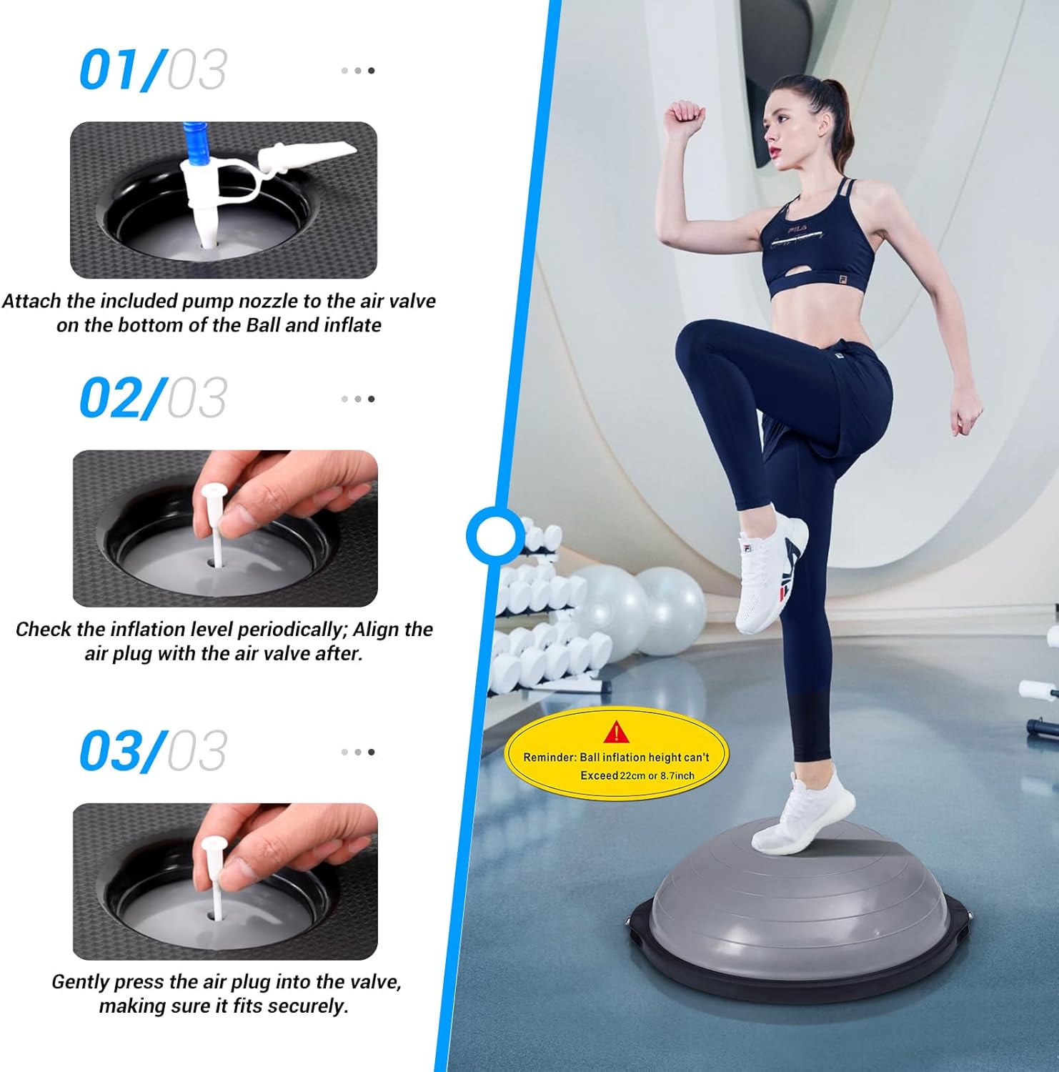Well, we have this multi-function design half ball balance trainer for you that you can easily carry around and take it anywhere with you. Even if you want to go to the gym or office, this inflatable balance ball makes your exercise extra value.