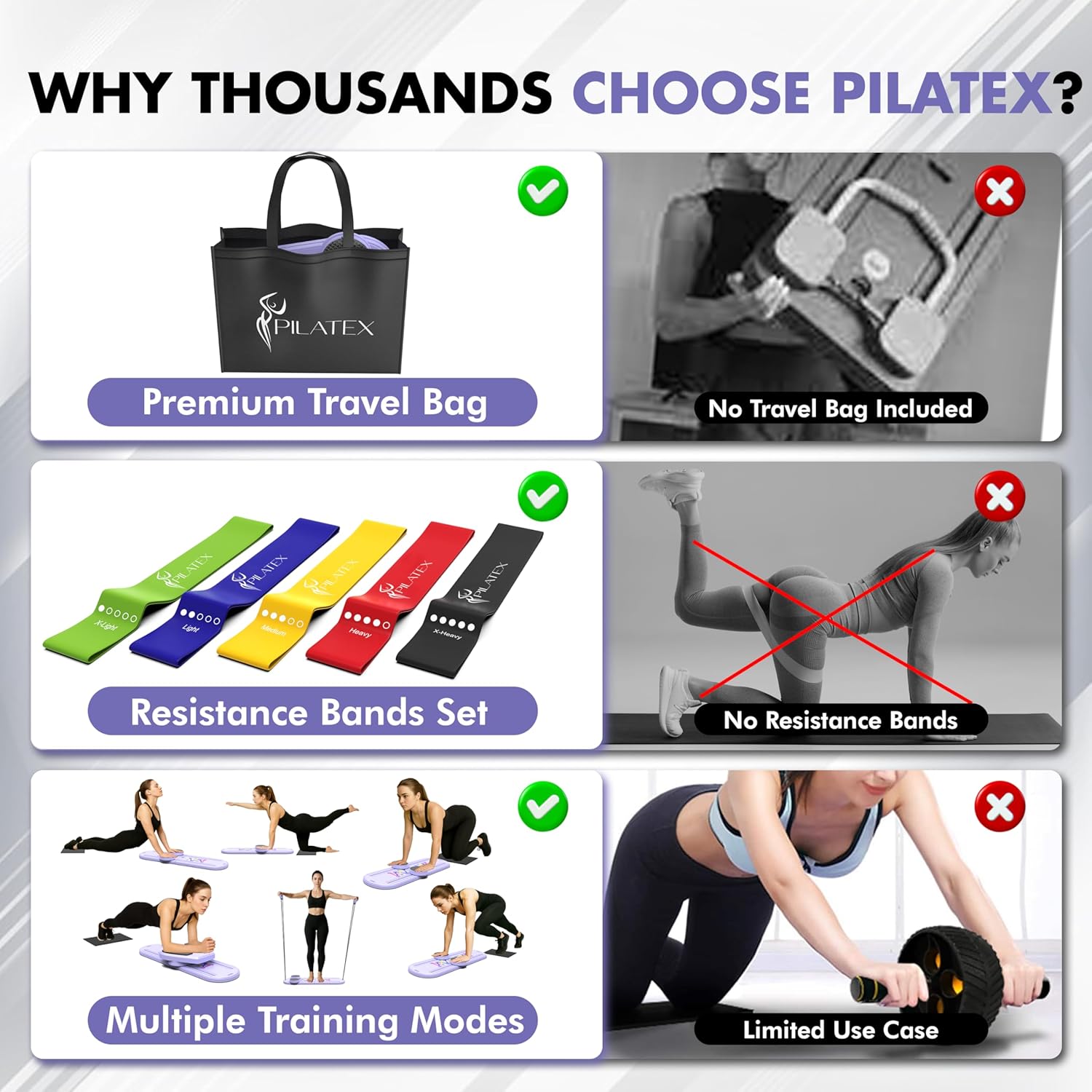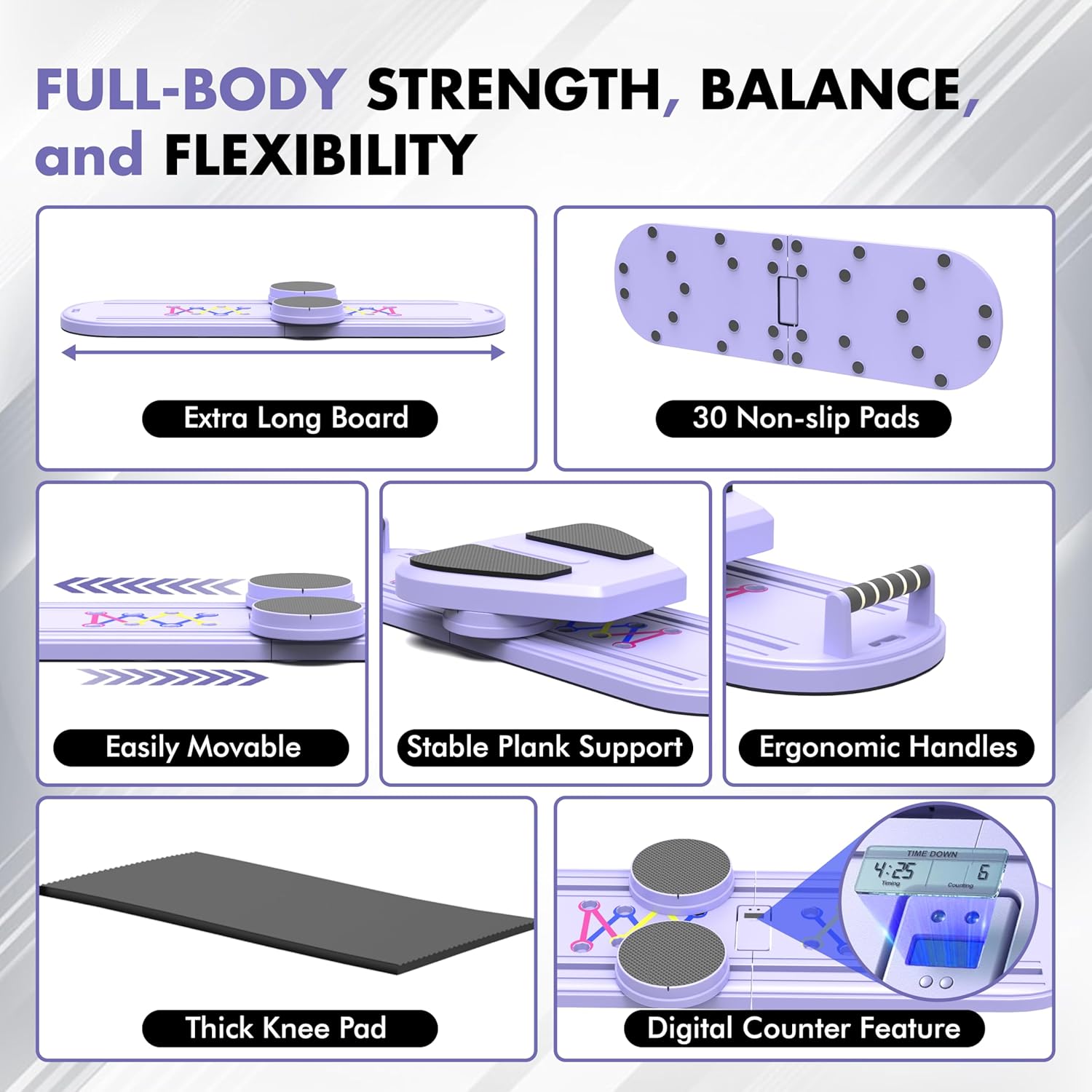 Comprehensive Set: The Pilatex Pilates kit for home workouts comes with everything you need for a rewarding and intensive training experience! The board comes with 5 x latex resistance bands and has a built-in digital counter to help you track your exercise progress.